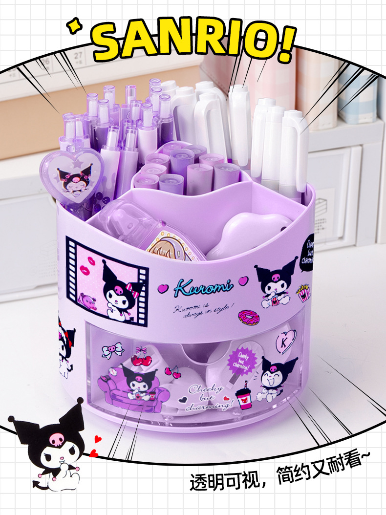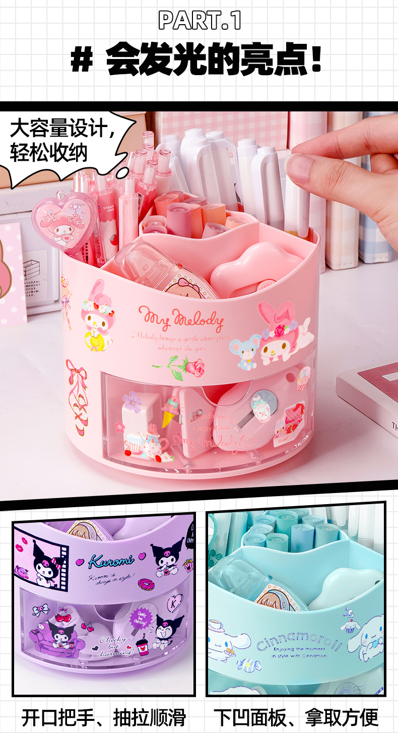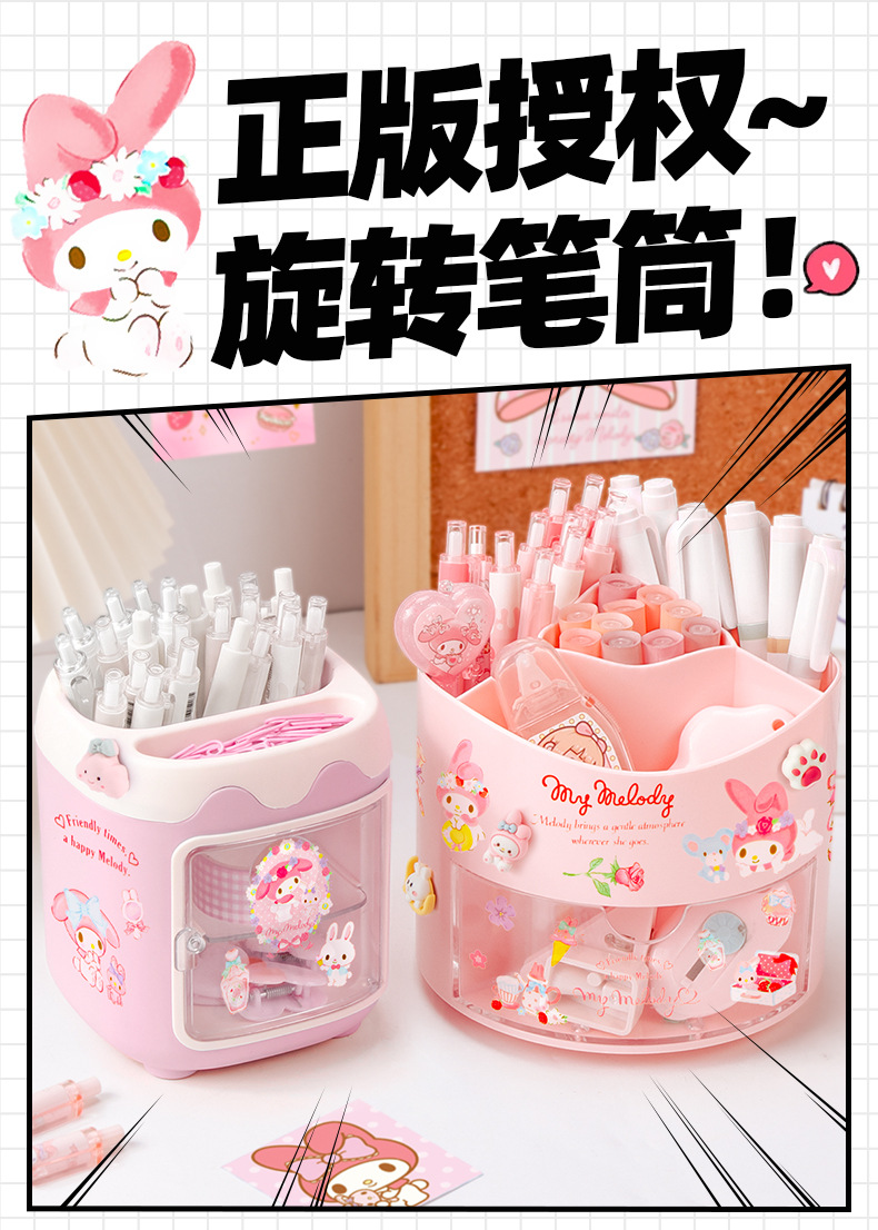 회전 가능한 펜 코너 Yugui 개 멜로디 데스크탑 멀티 그리드 마무리 문구 귀여운 소녀의 심장 저장 상자 펜 버킷 귀여운스토어 가기