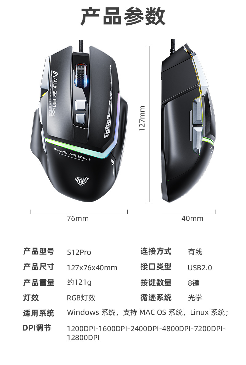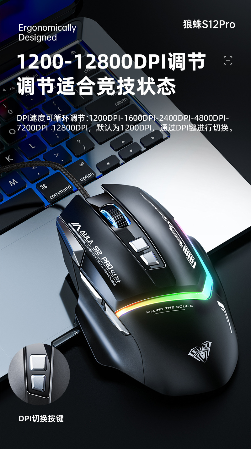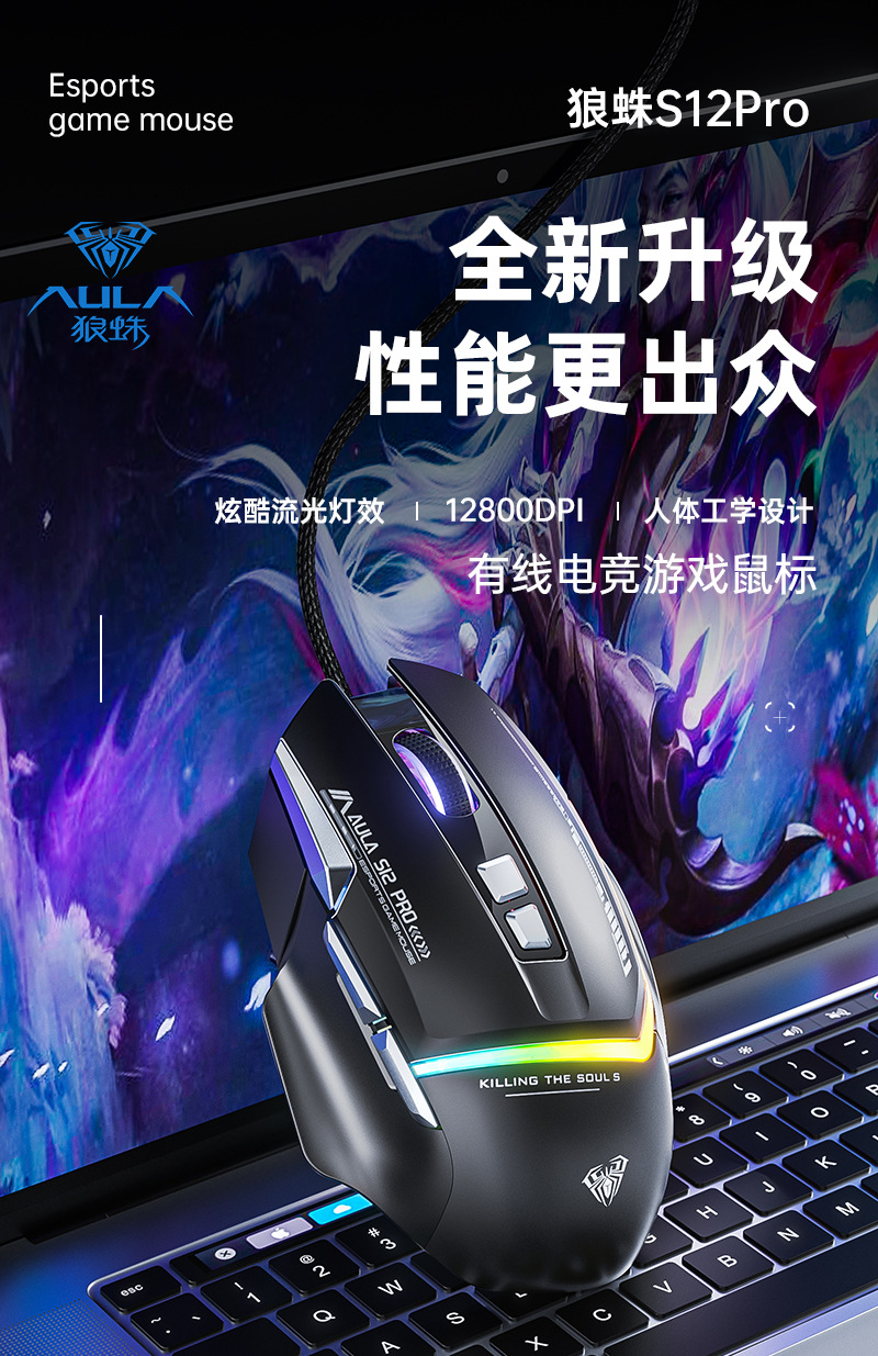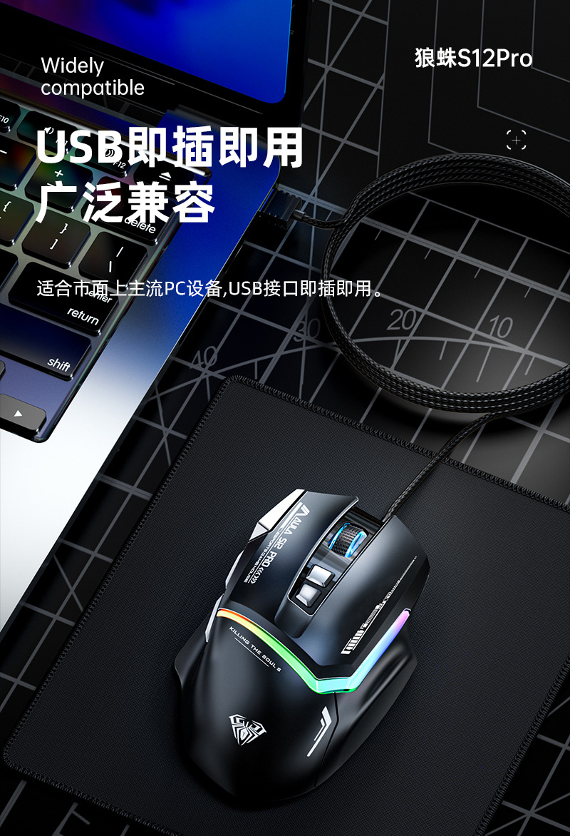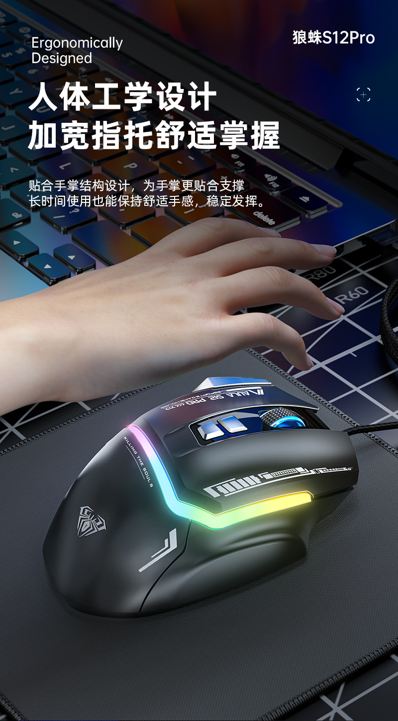 AULA 타란툴라 S12PRO 유선 기계 매크로 프로그래밍 게임 마우스 전자 스포츠 비즈니스 사무실 데스크탑 노트북