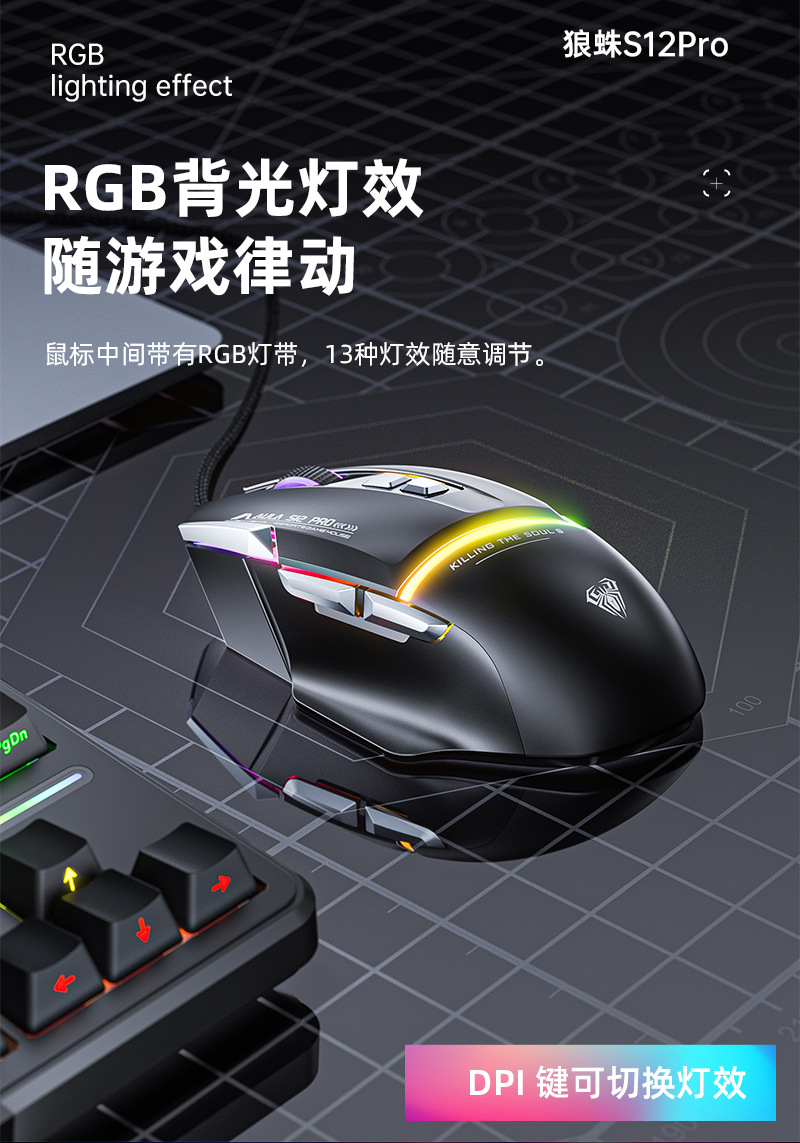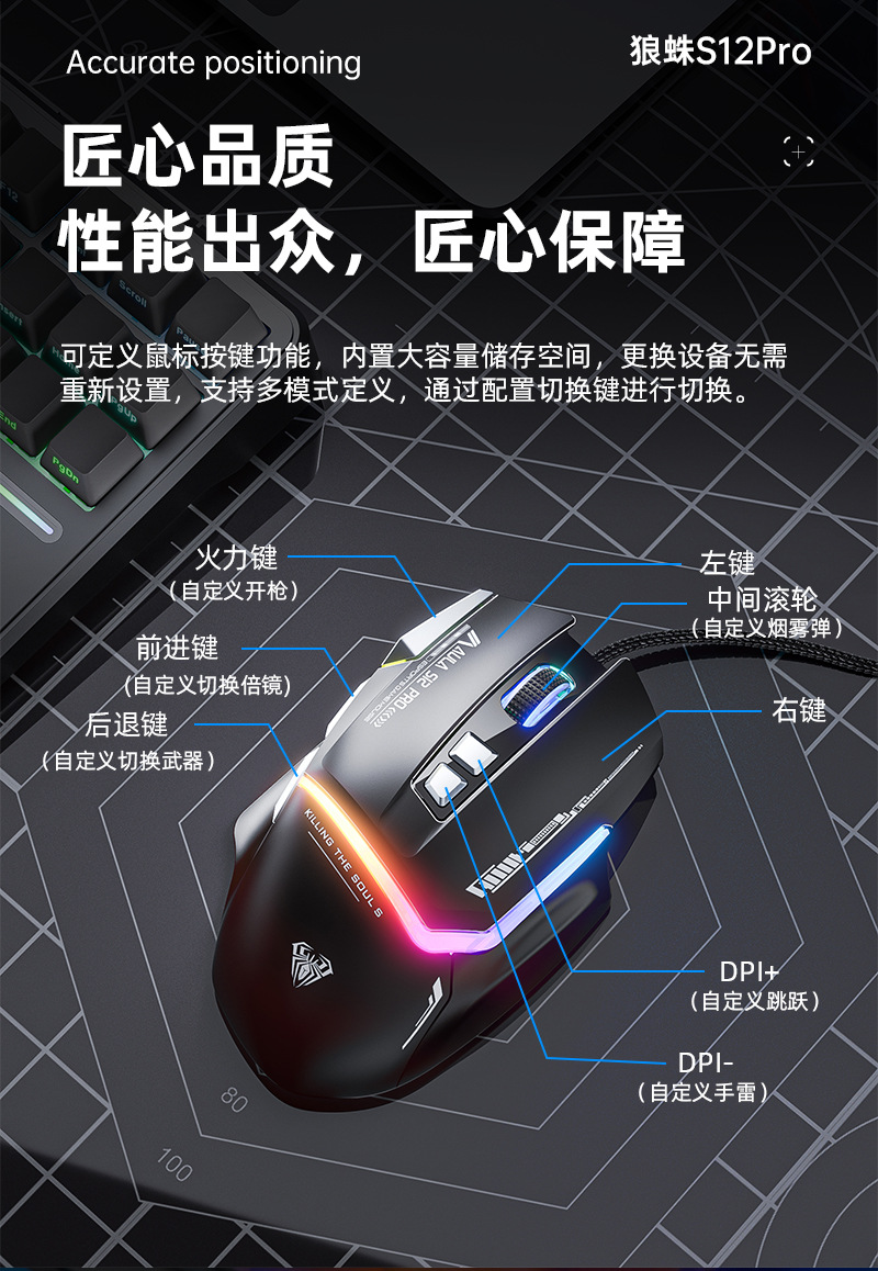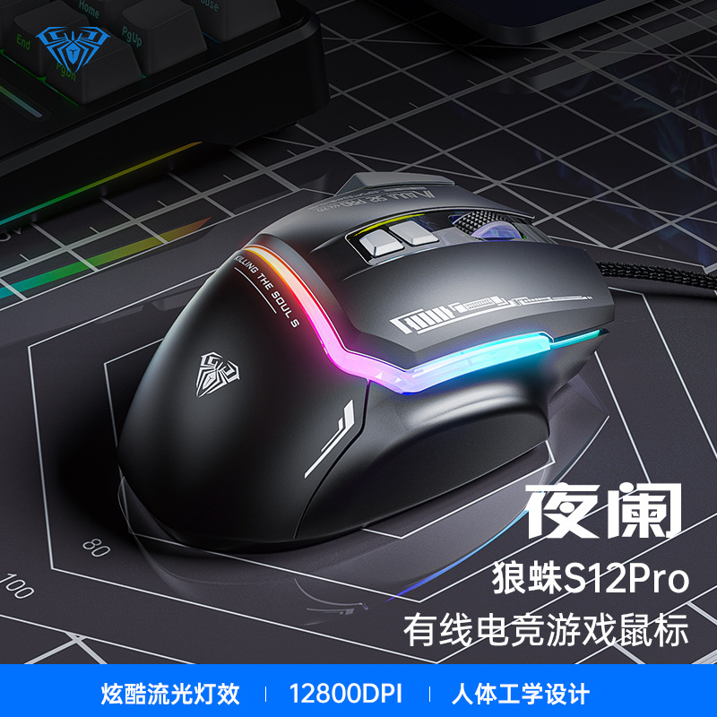 AULA 타란툴라 S12PRO 유선 기계 매크로 프로그래밍 게임 마우스 전자 스포츠 비즈니스 사무실 데스크탑 노트북스토어 가기