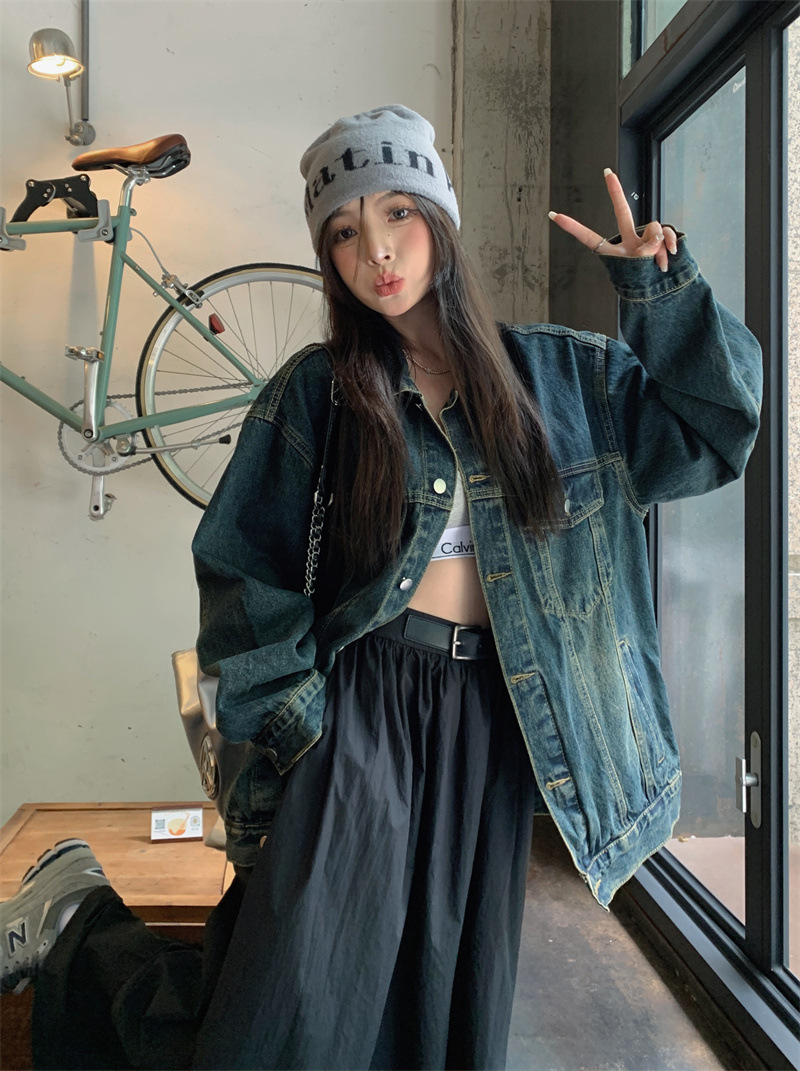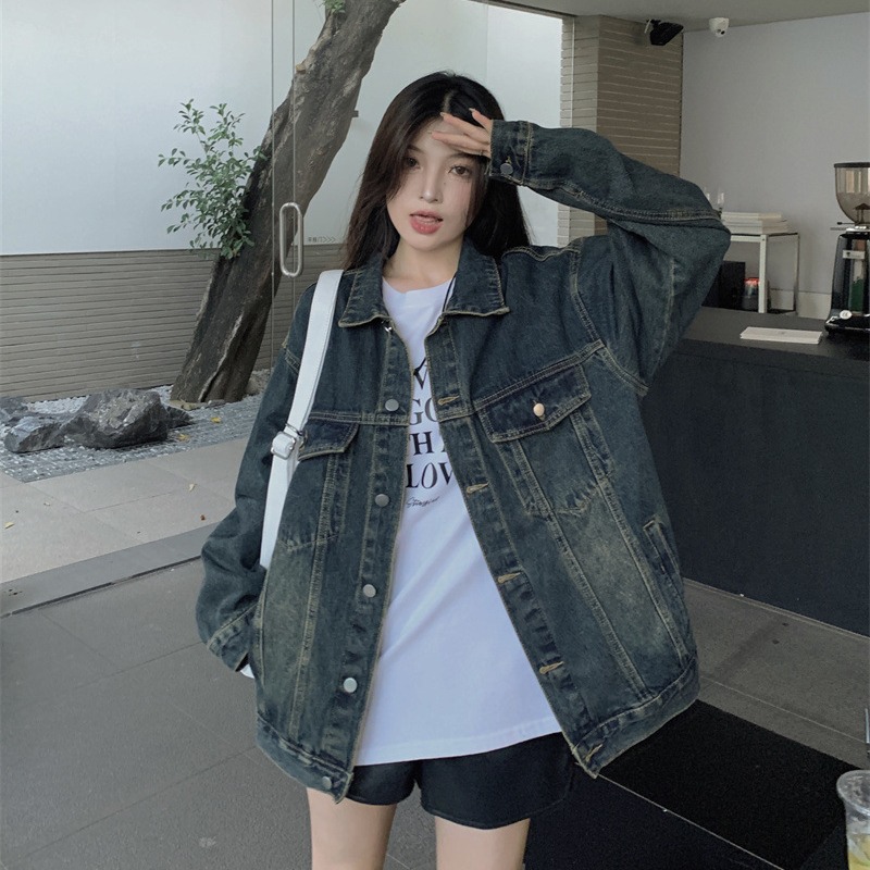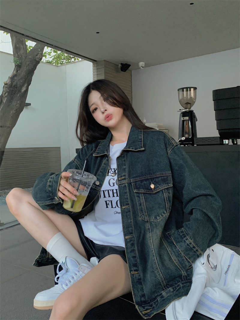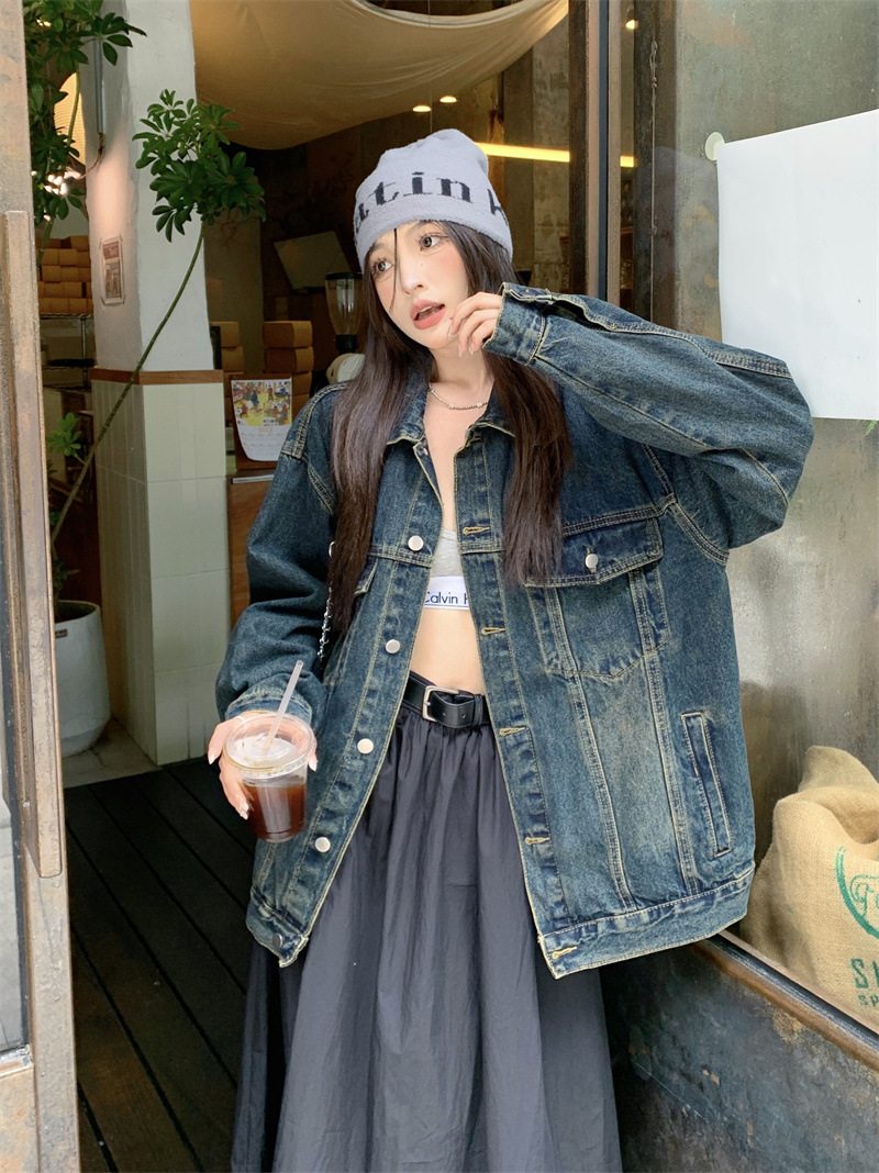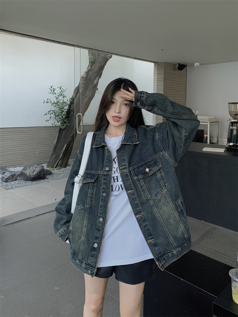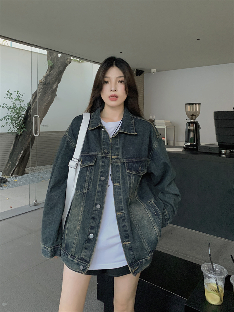 미국식 세탁 된 코트 여성용 2024 봄과 가을 새로운 유행 데님 느슨한 캐주얼 긴팔 재킷 트렌디 탑스토어 가기