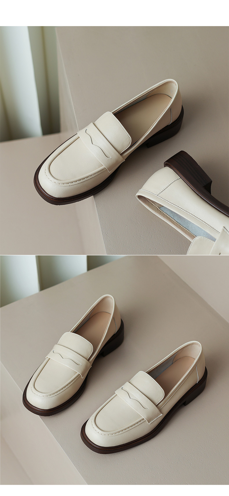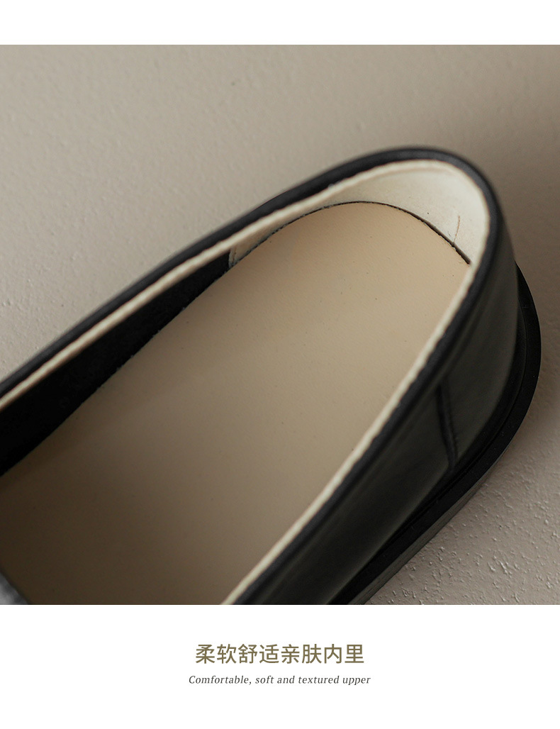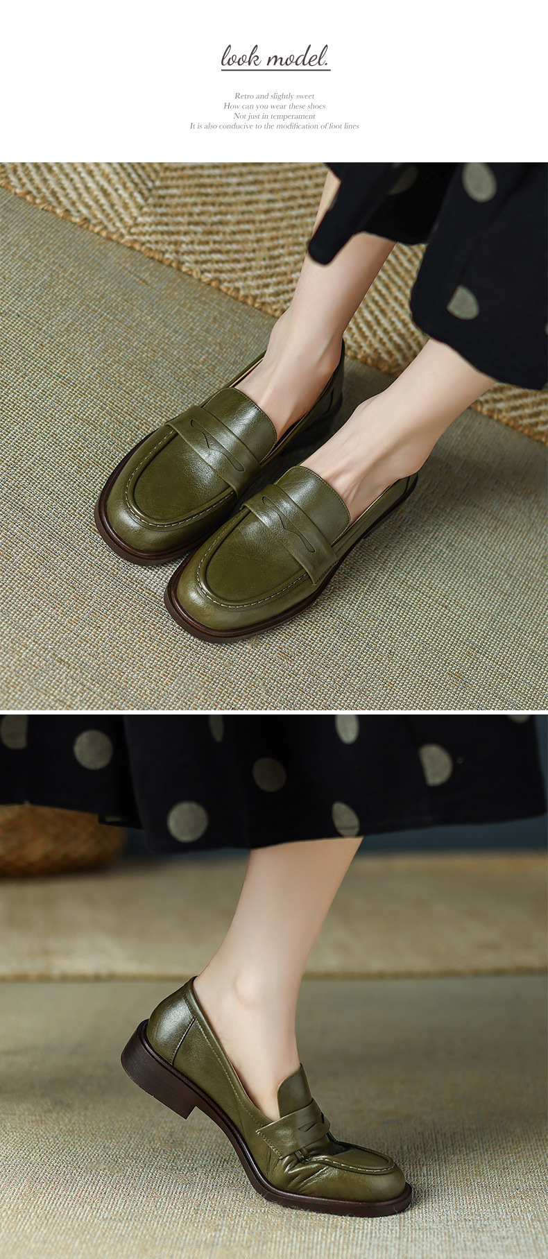 봄과 가을 2023 여성을위한 슈퍼 편안한 ~ 정품 가죽 청키 힐 레트로 로퍼 새로운 영국 스타일의 싱글 레이어 신발 미드 힐 작은 가죽 신발