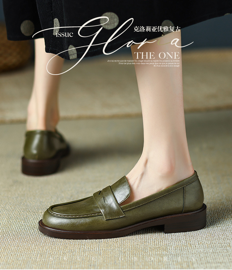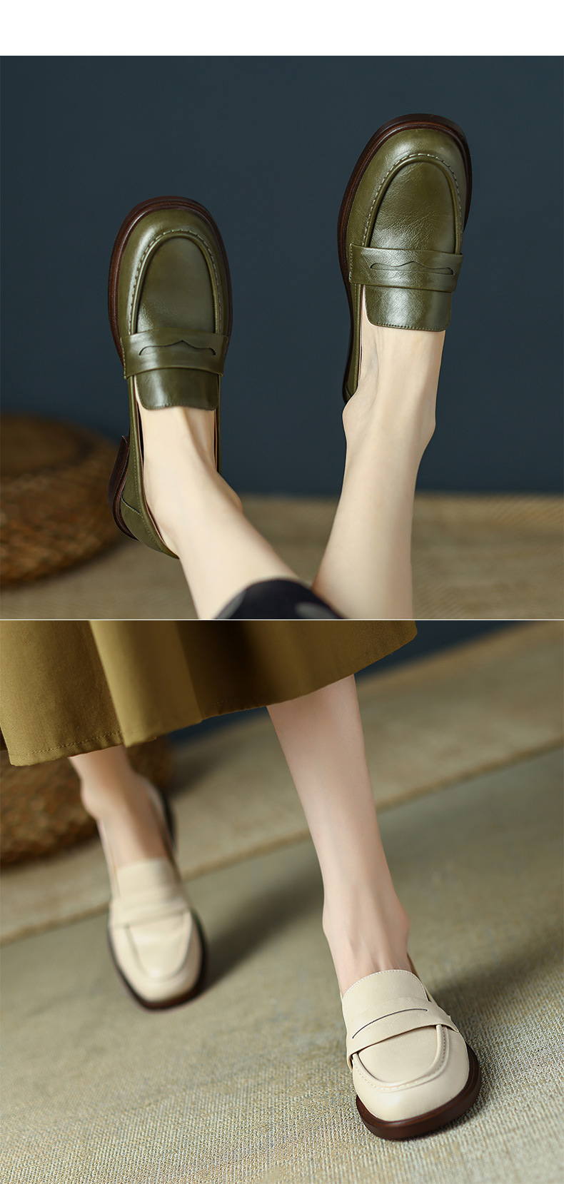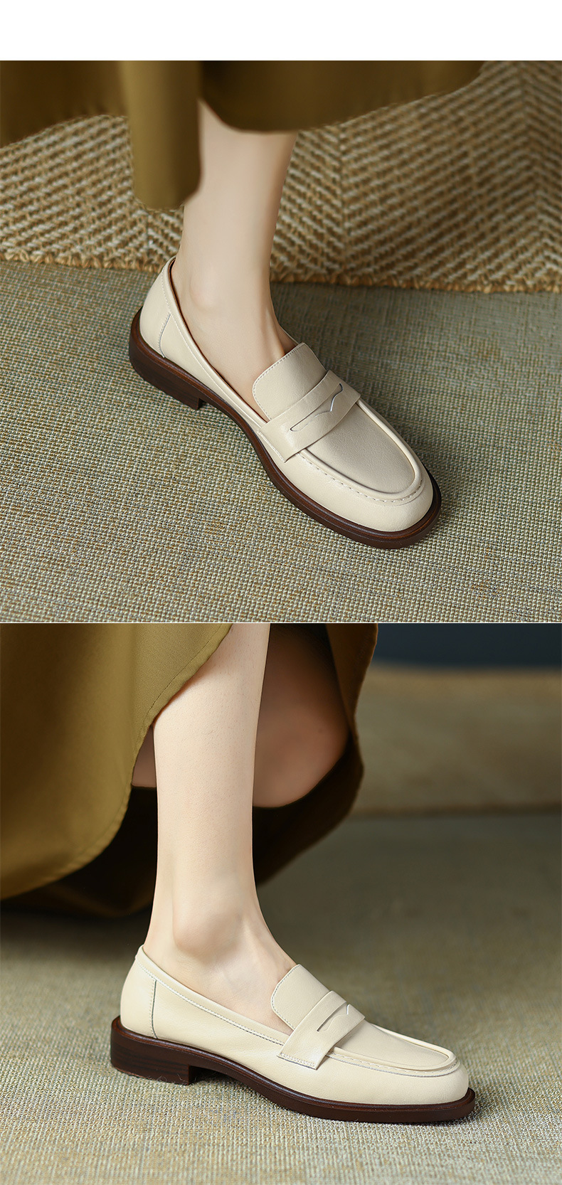 봄과 가을 2023 여성을위한 슈퍼 편안한 ~ 정품 가죽 청키 힐 레트로 로퍼 새로운 영국 스타일의 싱글 레이어 신발 미드 힐 작은 가죽 신발