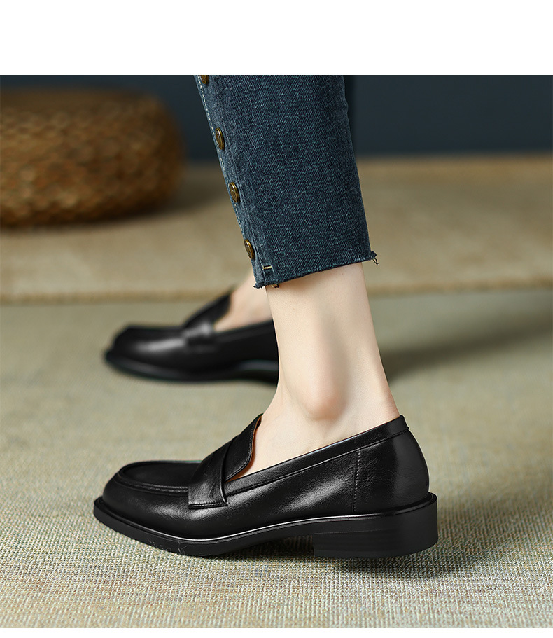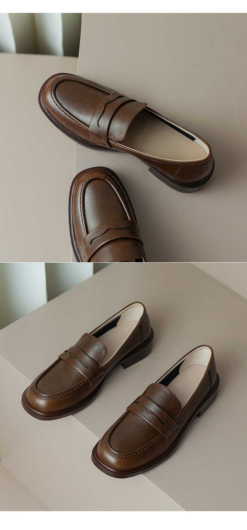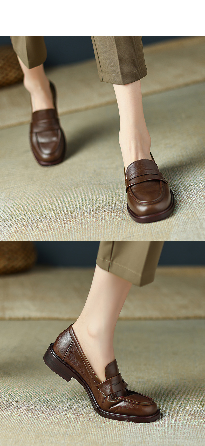 봄과 가을 2023 여성을위한 슈퍼 편안한 ~ 정품 가죽 청키 힐 레트로 로퍼 새로운 영국 스타일의 싱글 레이어 신발 미드 힐 작은 가죽 신발스토어 가기