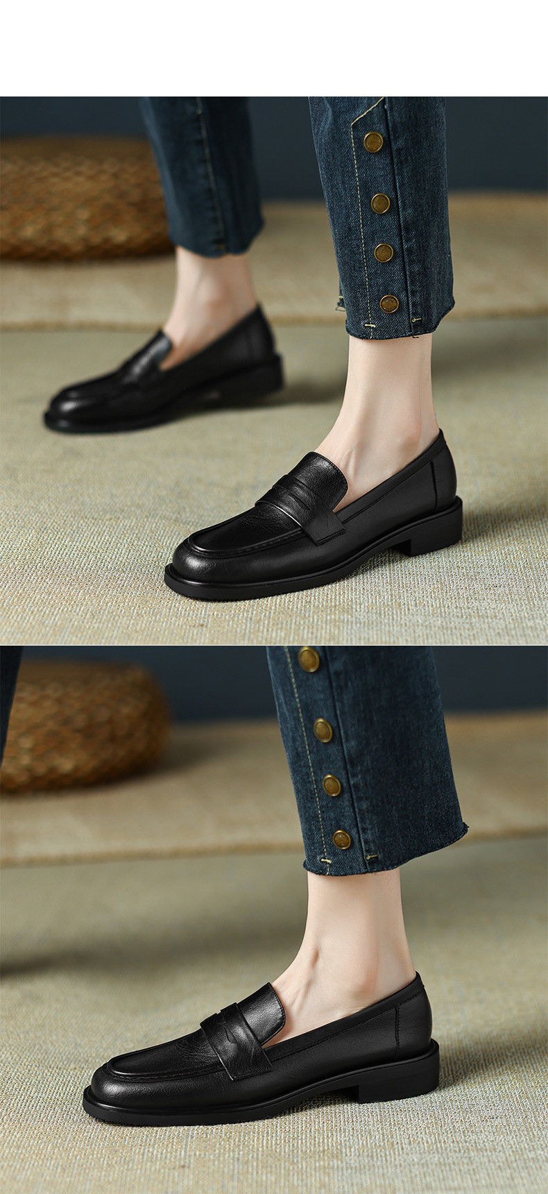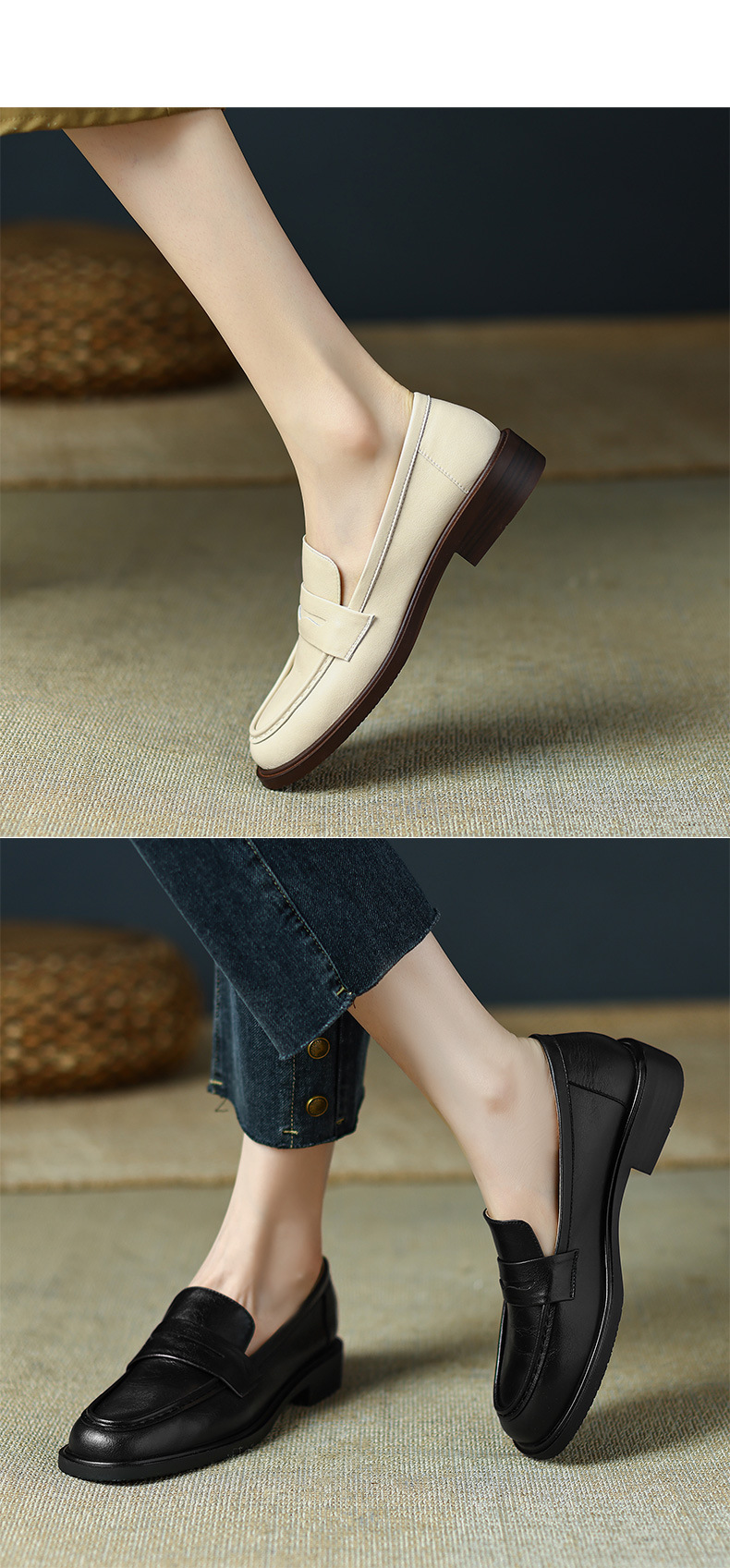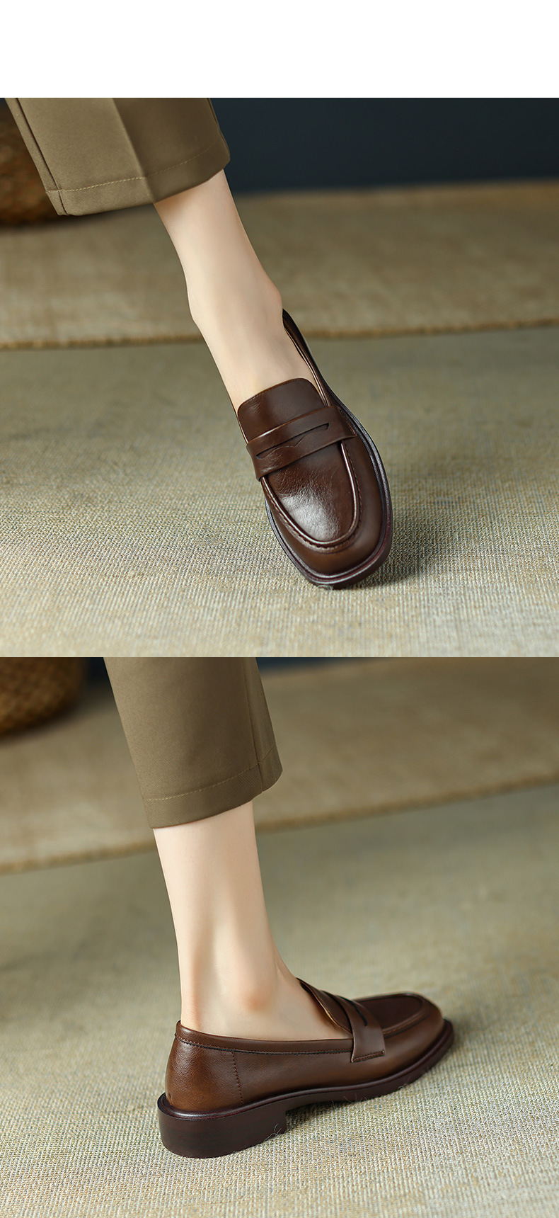 봄과 가을 2023 여성을위한 슈퍼 편안한 ~ 정품 가죽 청키 힐 레트로 로퍼 새로운 영국 스타일의 싱글 레이어 신발 미드 힐 작은 가죽 신발스토어 가기