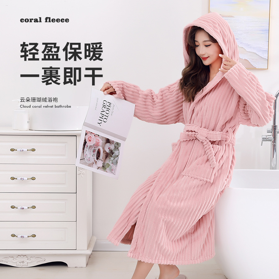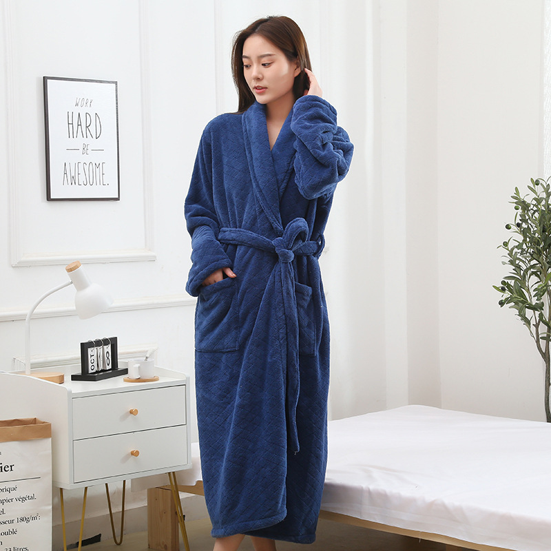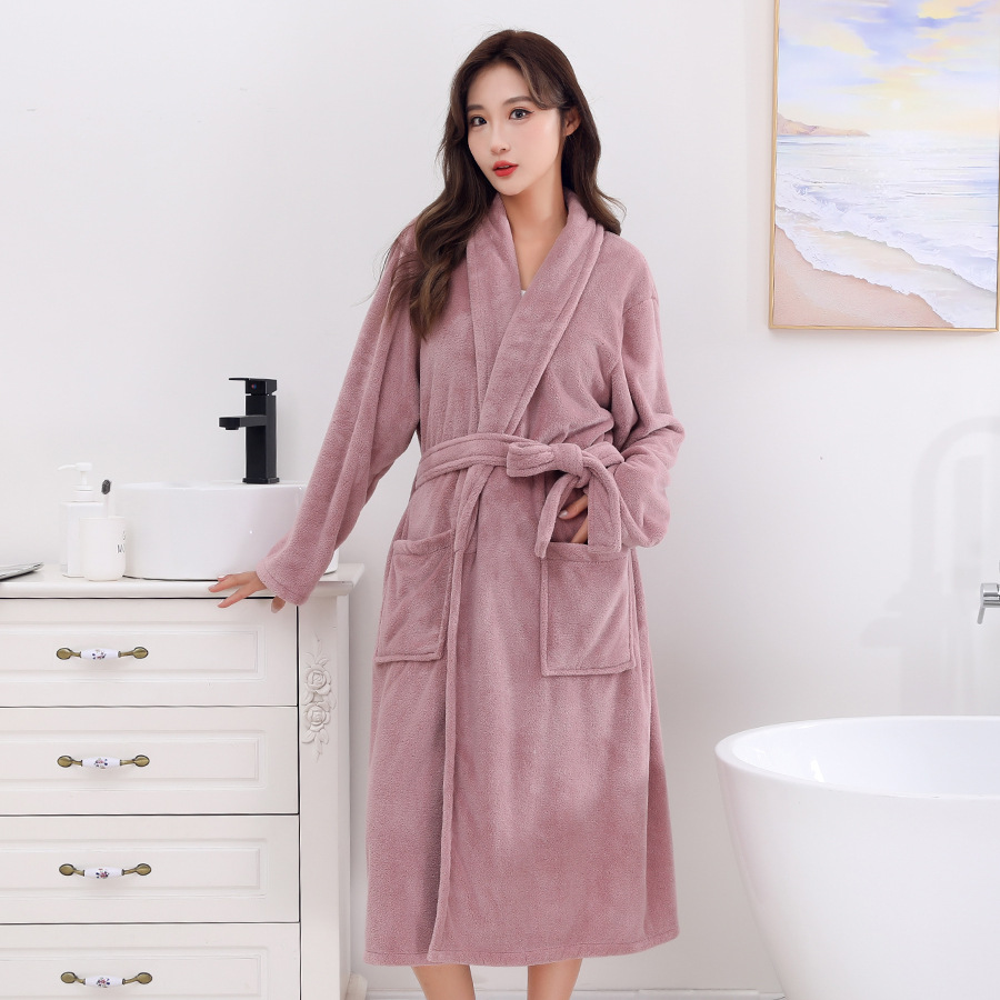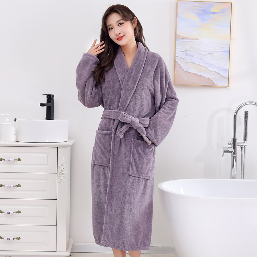 남성과 여성 목욕 가운 성인 산호 벨벳 두꺼운 부드러운 커플 홈 잠옷 스트랩 긴 소매 목욕 스커트 도매 국경 간스토어 가기