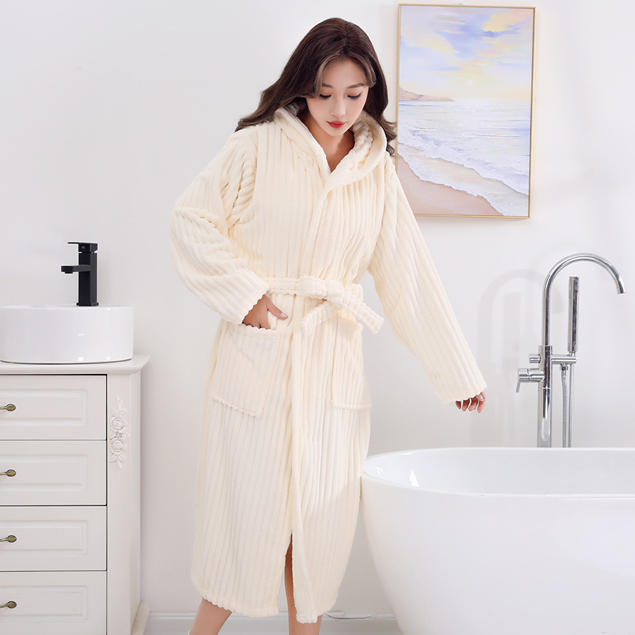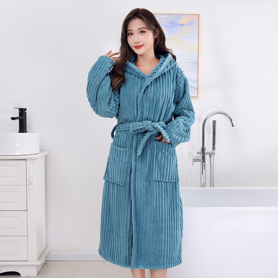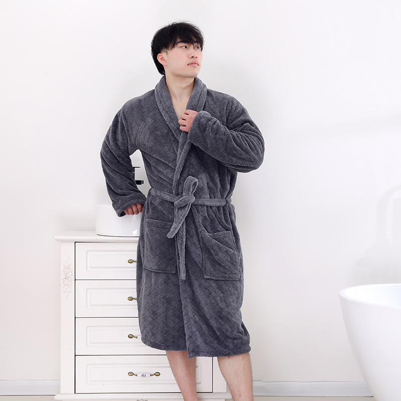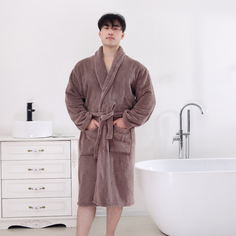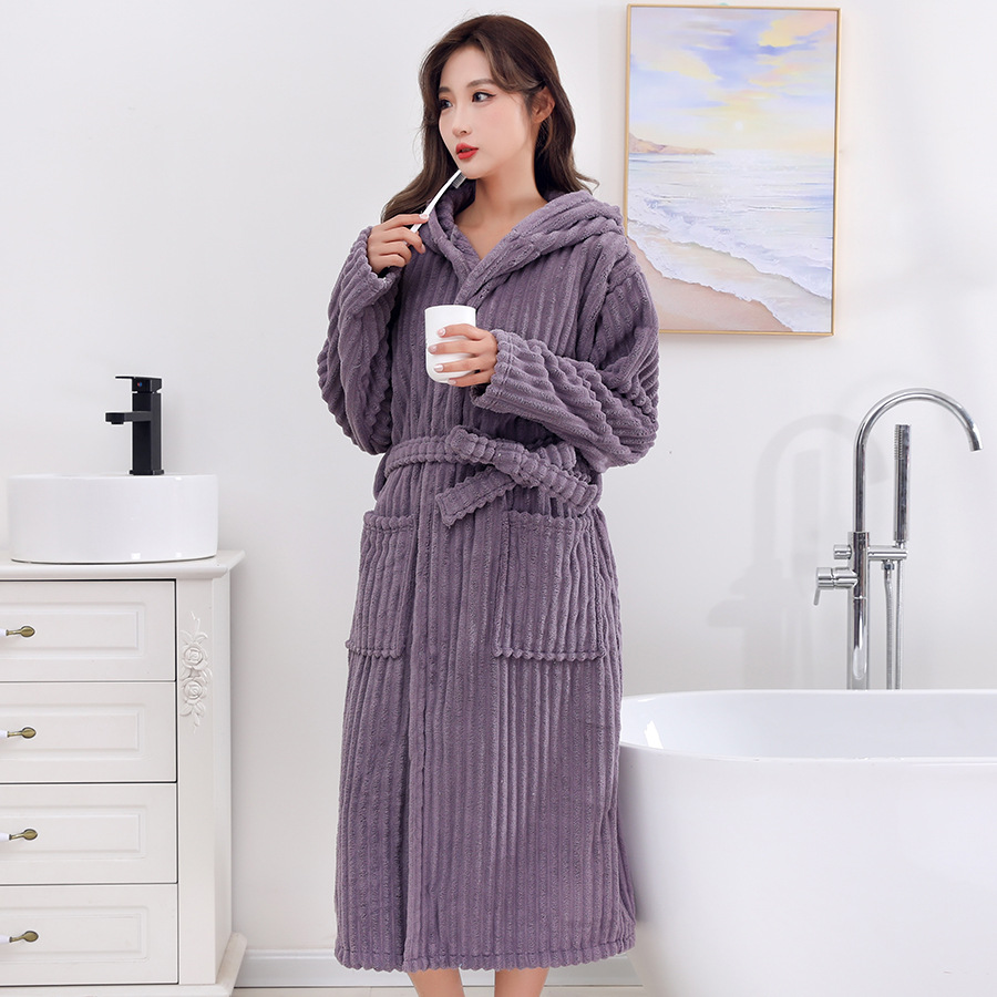 남성과 여성 목욕 가운 성인 산호 벨벳 두꺼운 부드러운 커플 홈 잠옷 스트랩 긴 소매 목욕 스커트 도매 국경 간스토어 가기