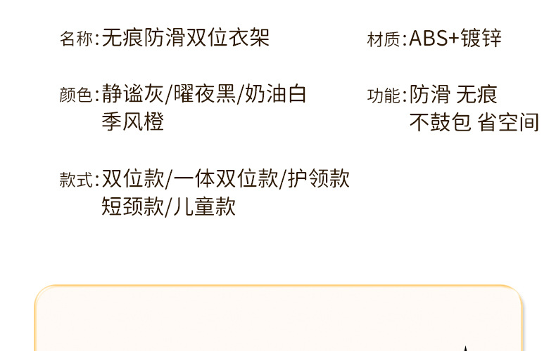 产品名称:无痕宽肩防滑双位衣架