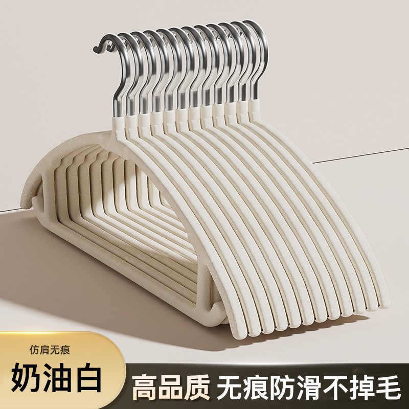 • 크림 화이트 플로킹 반원형 옷걸이