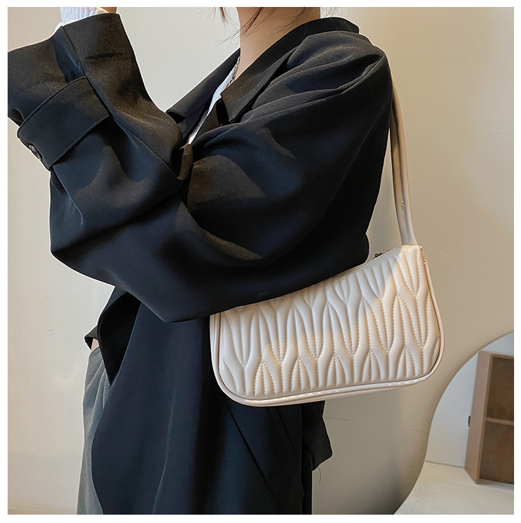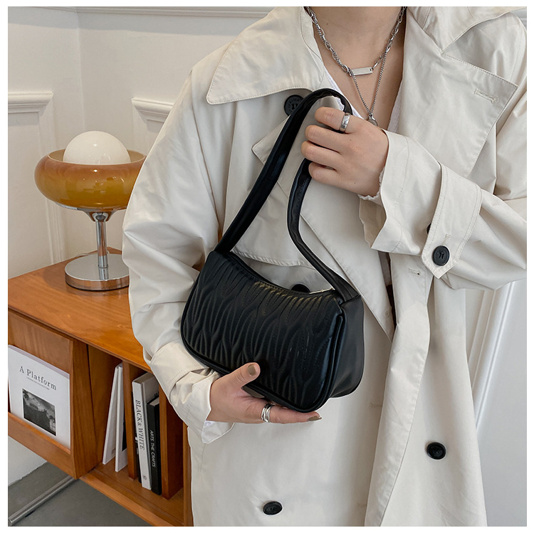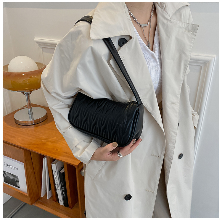 여성용 외국 무역 싱글 숄더백 2026 신상 프랑스풍 니치 크로스백 주름 질감의 다용도 핸드백 겸 숄더백