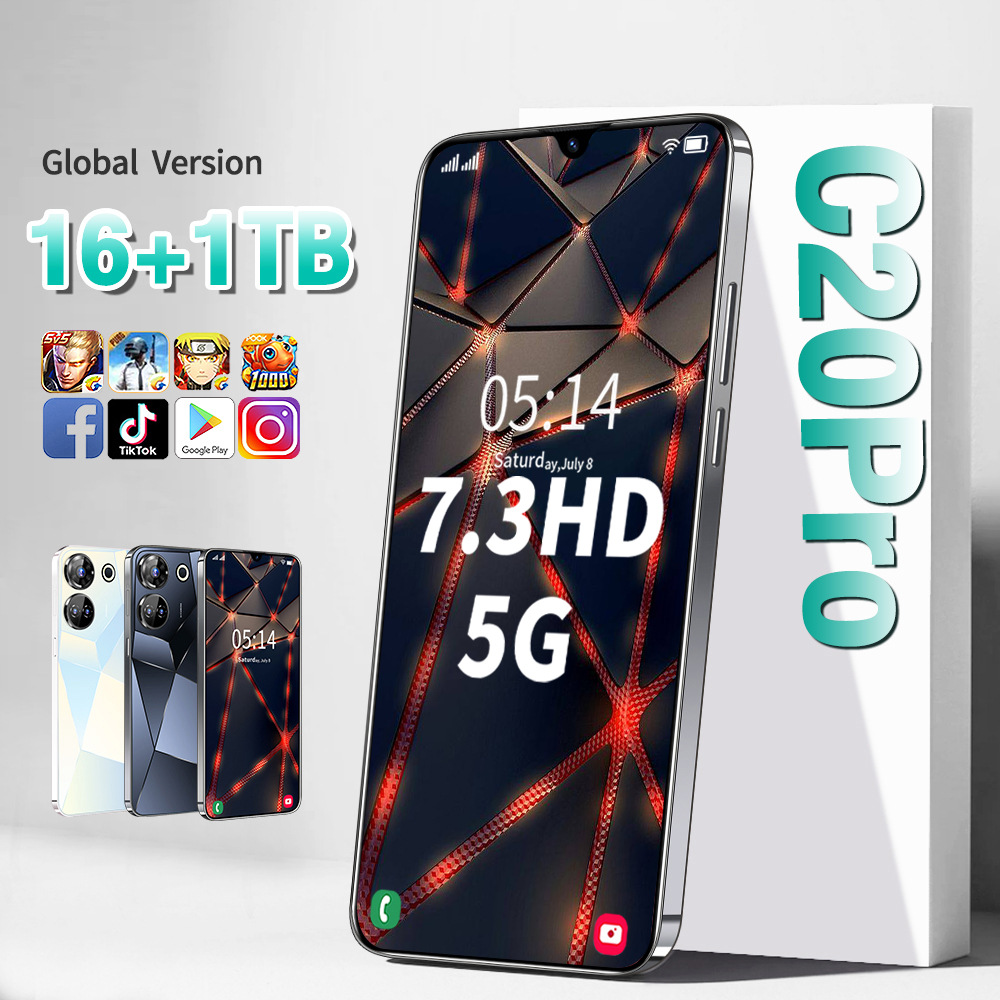 국경 간 새로운 C20Pro 7.3 인치 대형 스크린 16 + 1TB 저렴한 안드로이드 대외 무역 스마트 폰 공장 도매스토어 가기