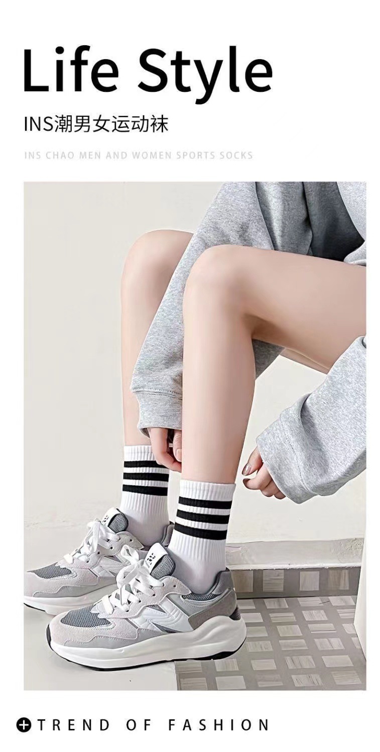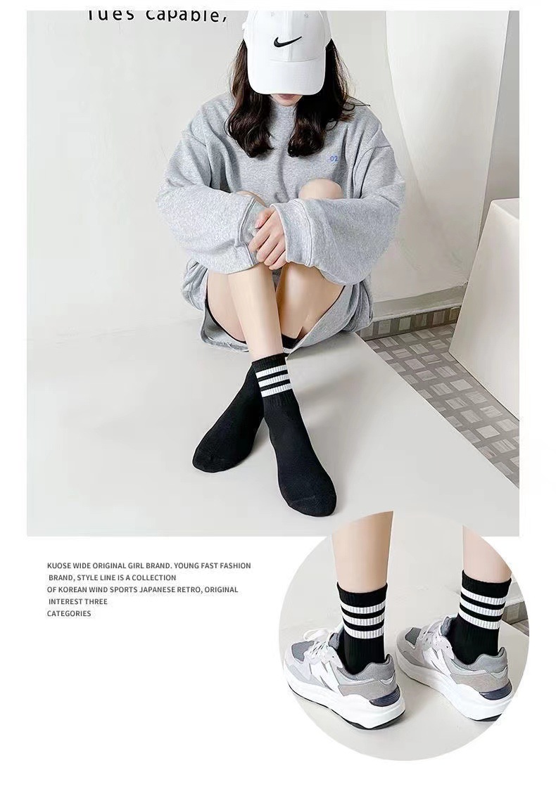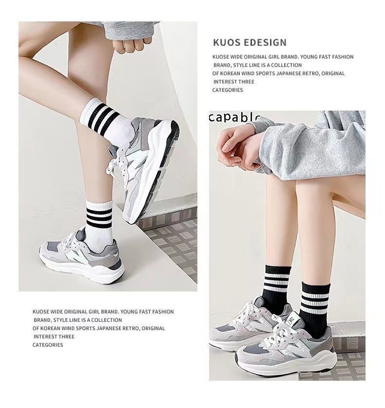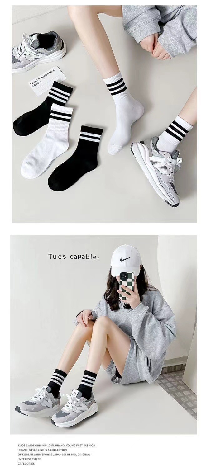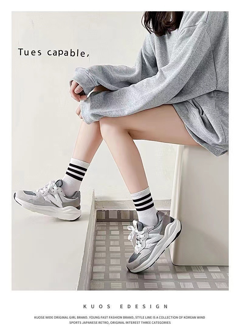 여성 봄과 가을 순면 Ins 트렌디 한 메쉬 적외선 착용 흑백 가을과 겨울 스타킹 스포츠 롱 튜브스토어 가기