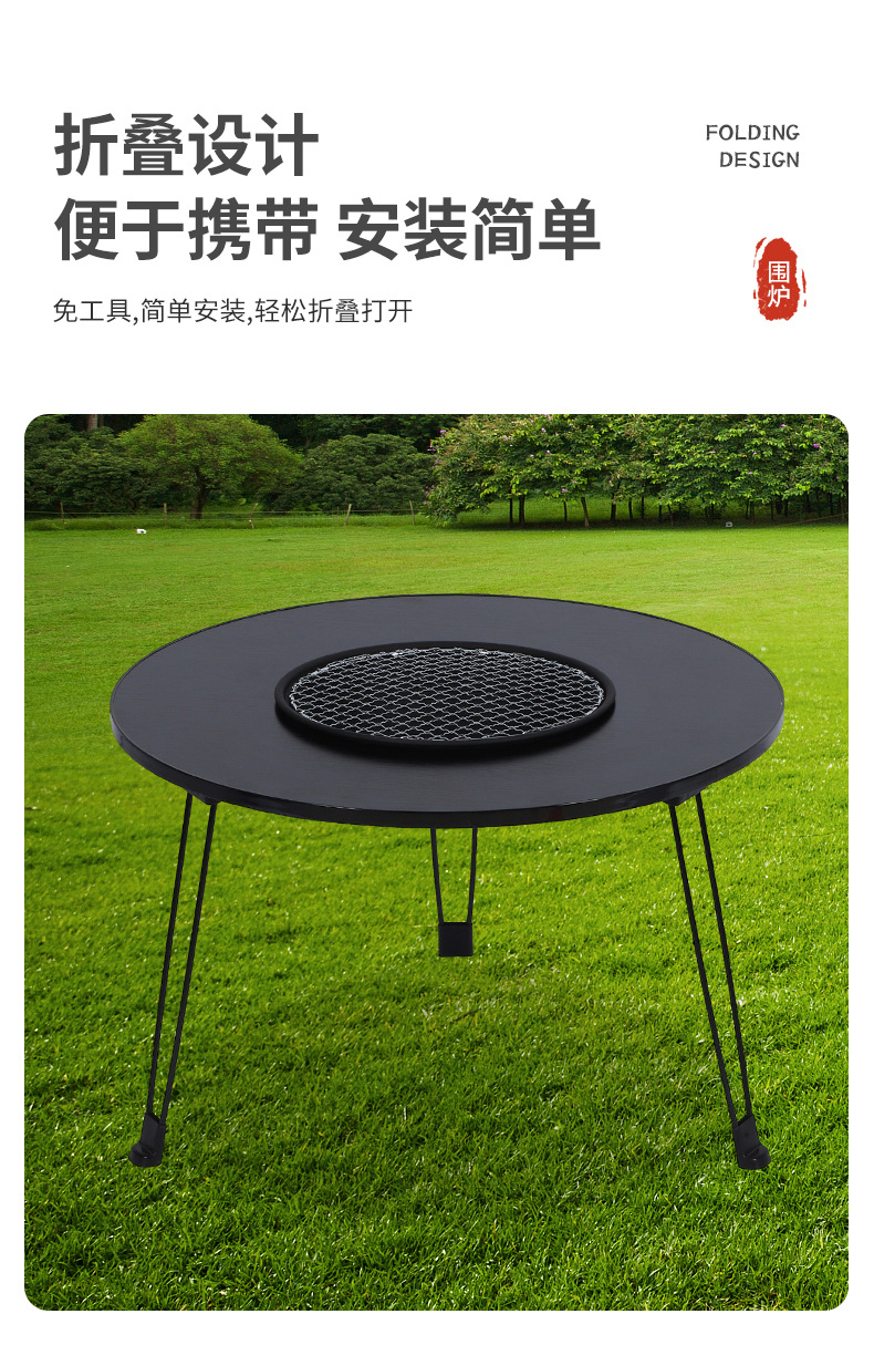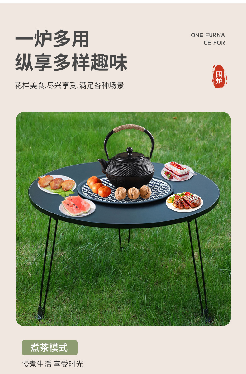 스토브 차 요리 가정용 스토브 캠핑 야외 난방 탄소 오븐 접이식 작은 원형 테이블 휴대용 바베큐 스토브