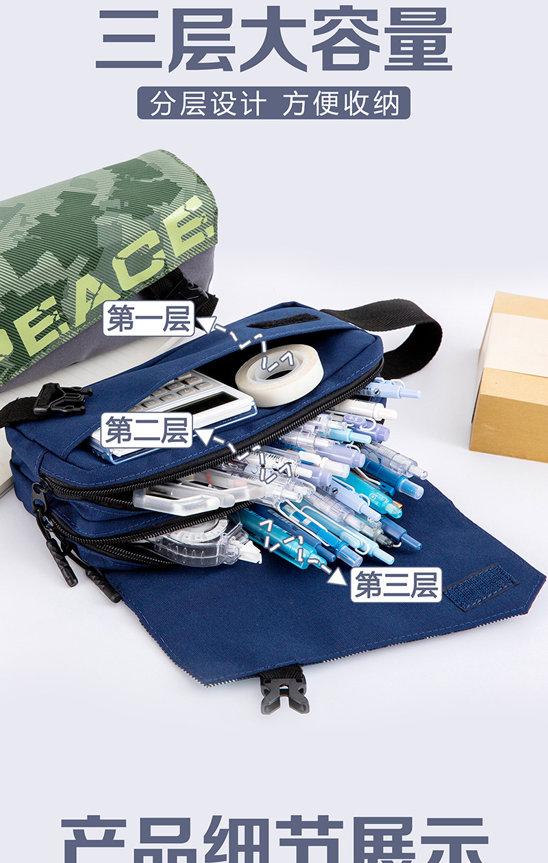 연필 케이스 대용량, 잘 생긴 멋진 문구 상자 중학교 초등학생 연필 가방 위장스토어 가기