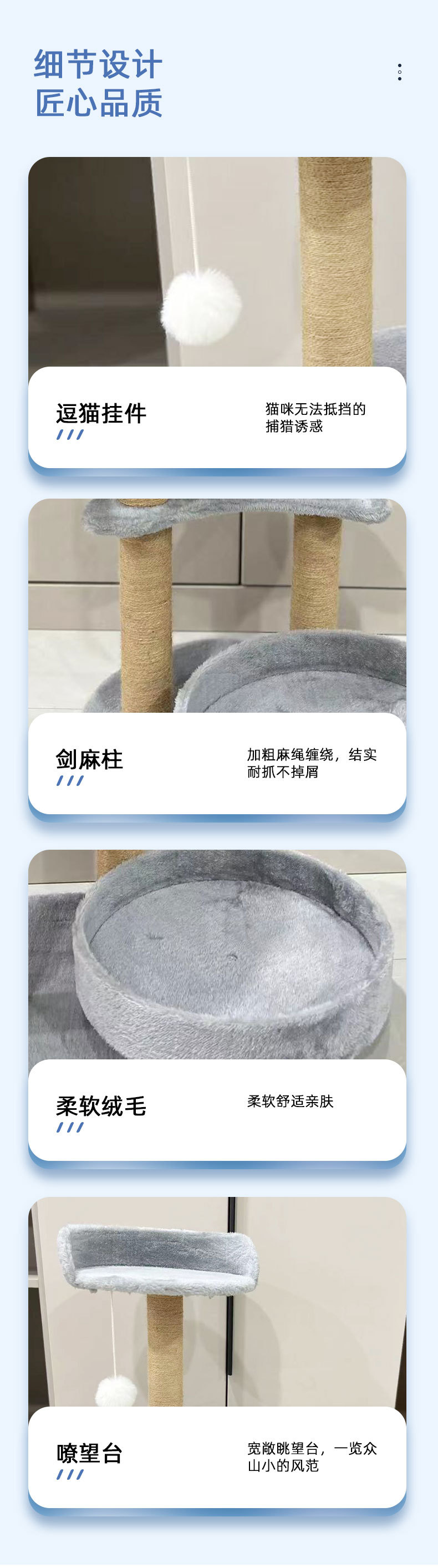 제조업체는 고양이 등반 프레임, 고양이 둥지, 올인원 고양이 용품, 고양이 긁는 보드, 내마모성 및 비흘림, 다층 점프 플랫폼 고양이 장난감을 공급합니다.스토어 가기