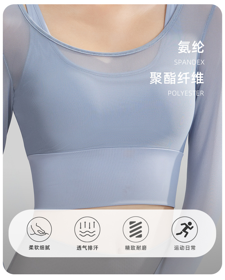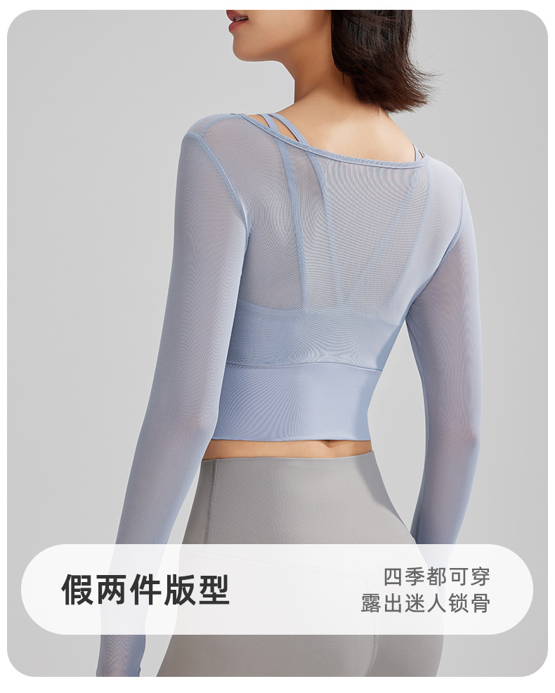 새로운 통기성 가짜 2 피스 교수형 목 스포츠 요가 세트 가슴 패드 타이트 배벨이 가을과 겨울을위한 긴팔 피트니스 세트 종료합니다.