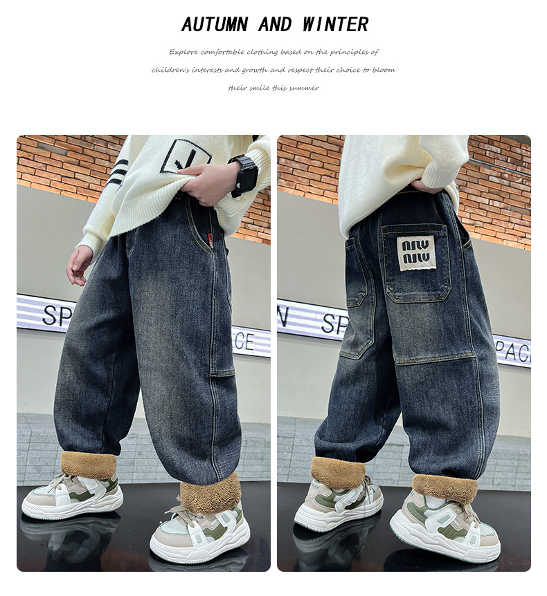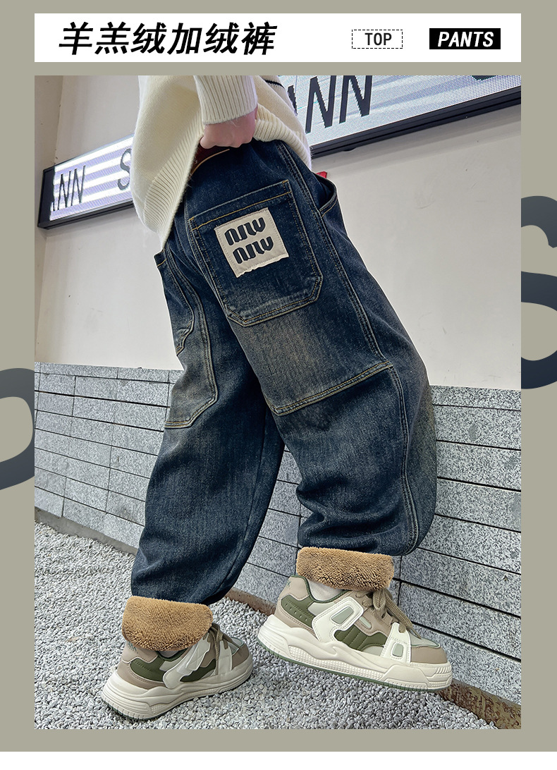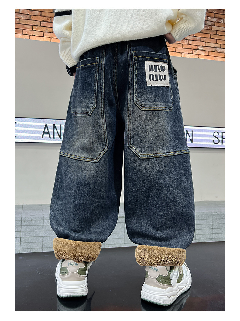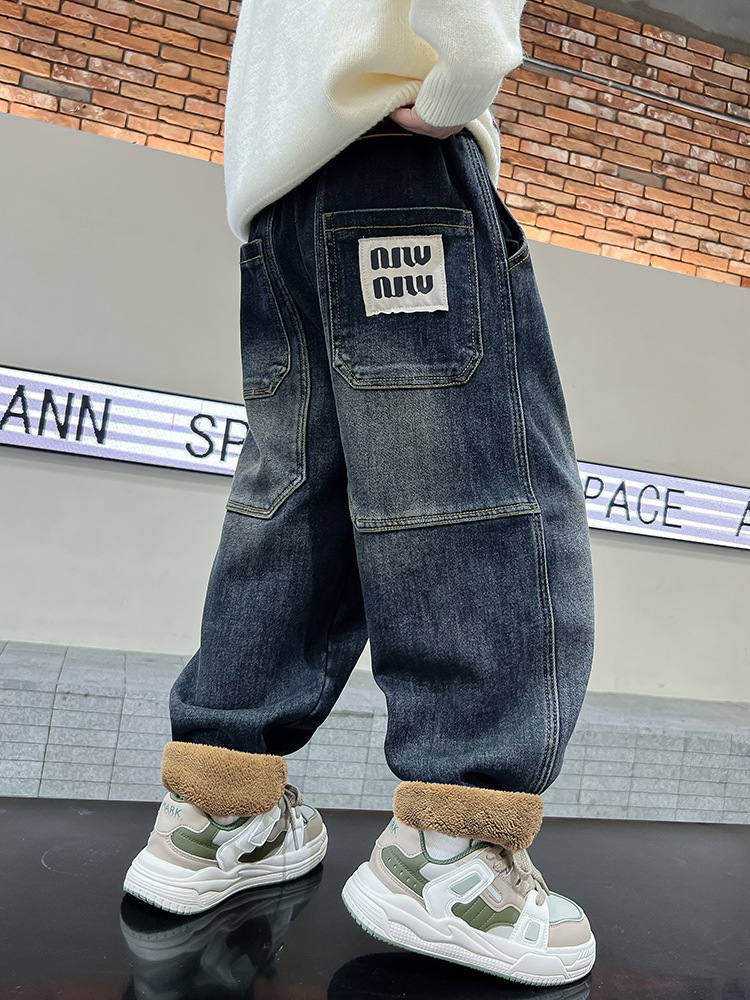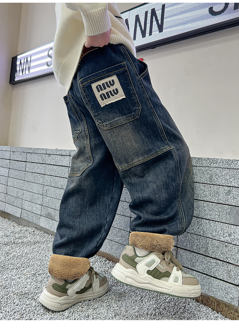 남아용 겨울 기모 두꺼운 청바지 2025 신상 아동 겨울옷 바지 따뜻한 겨울용 긴바지 트렌디