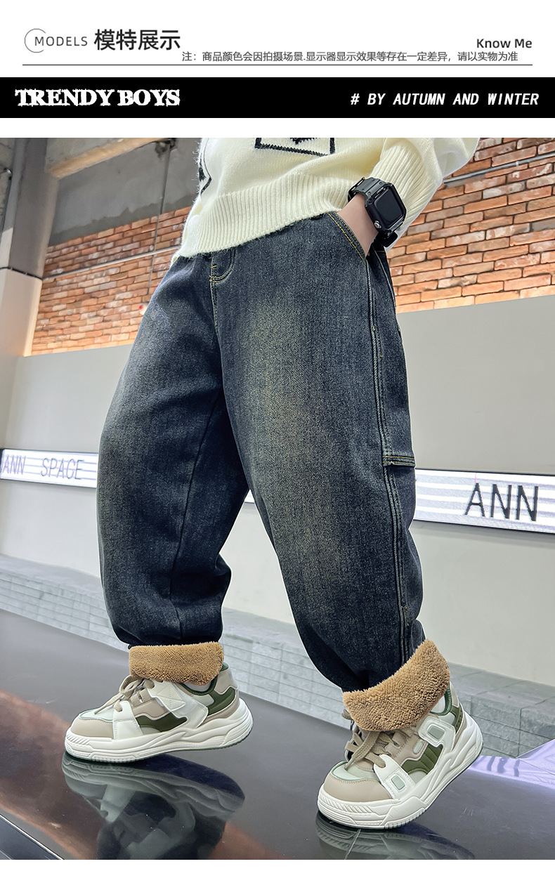 남아용 겨울 기모 두꺼운 청바지 2025 신상 아동 겨울옷 바지 따뜻한 겨울용 긴바지 트렌디스토어 가기