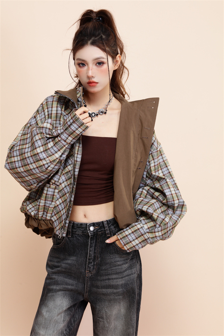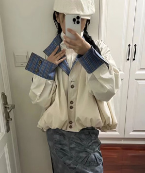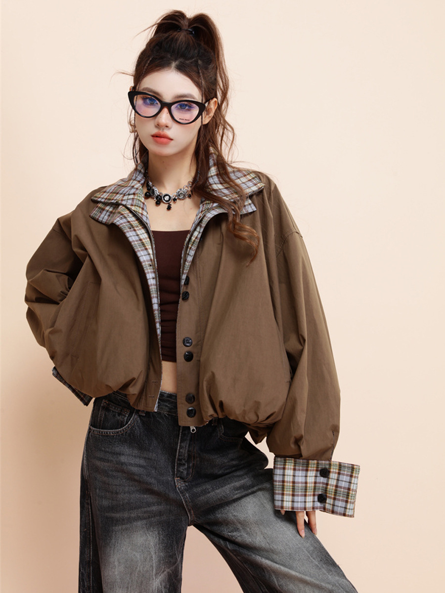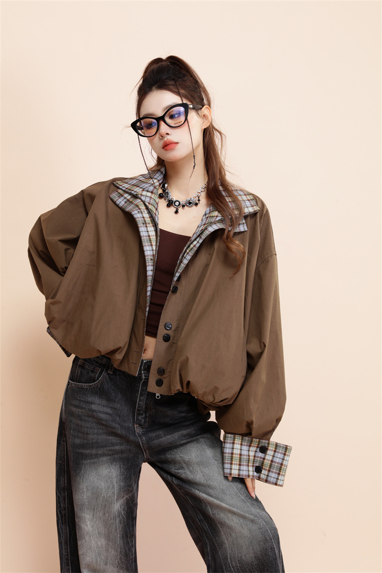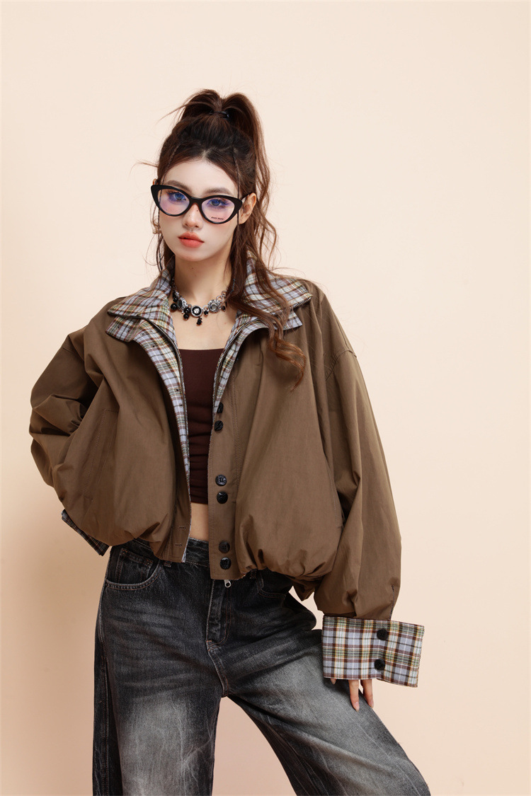 양면 재킷 여성 디자인 감각 틈새 복고풍 느슨한 짧은 캐주얼 올 매치 대비 색상 Top Spring New