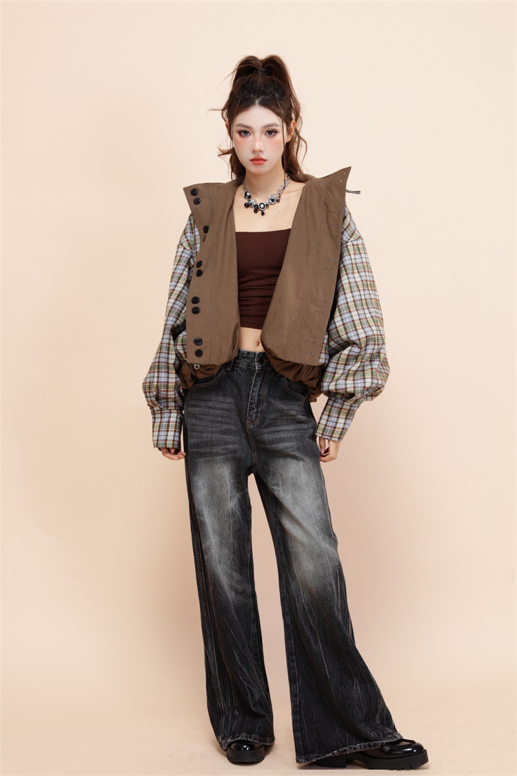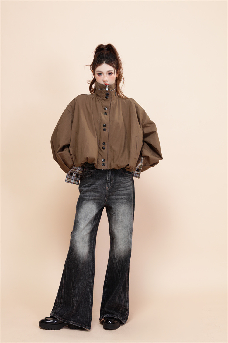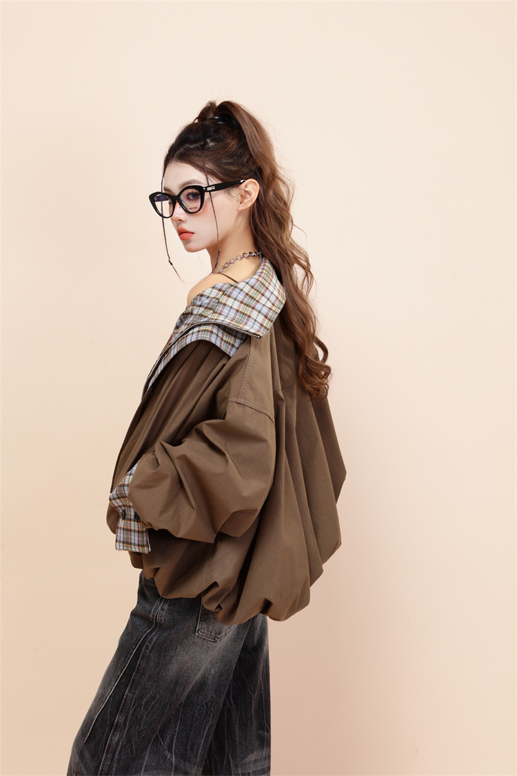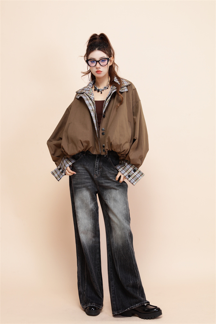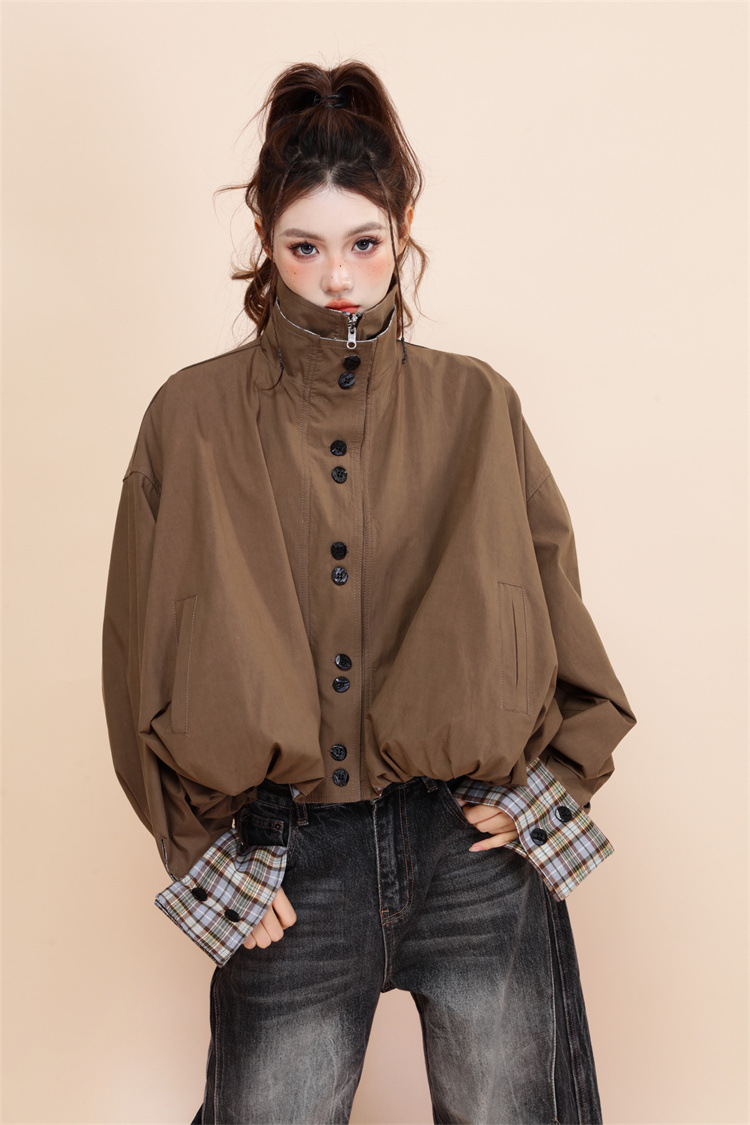 양면 재킷 여성 디자인 감각 틈새 복고풍 느슨한 짧은 캐주얼 올 매치 대비 색상 Top Spring New