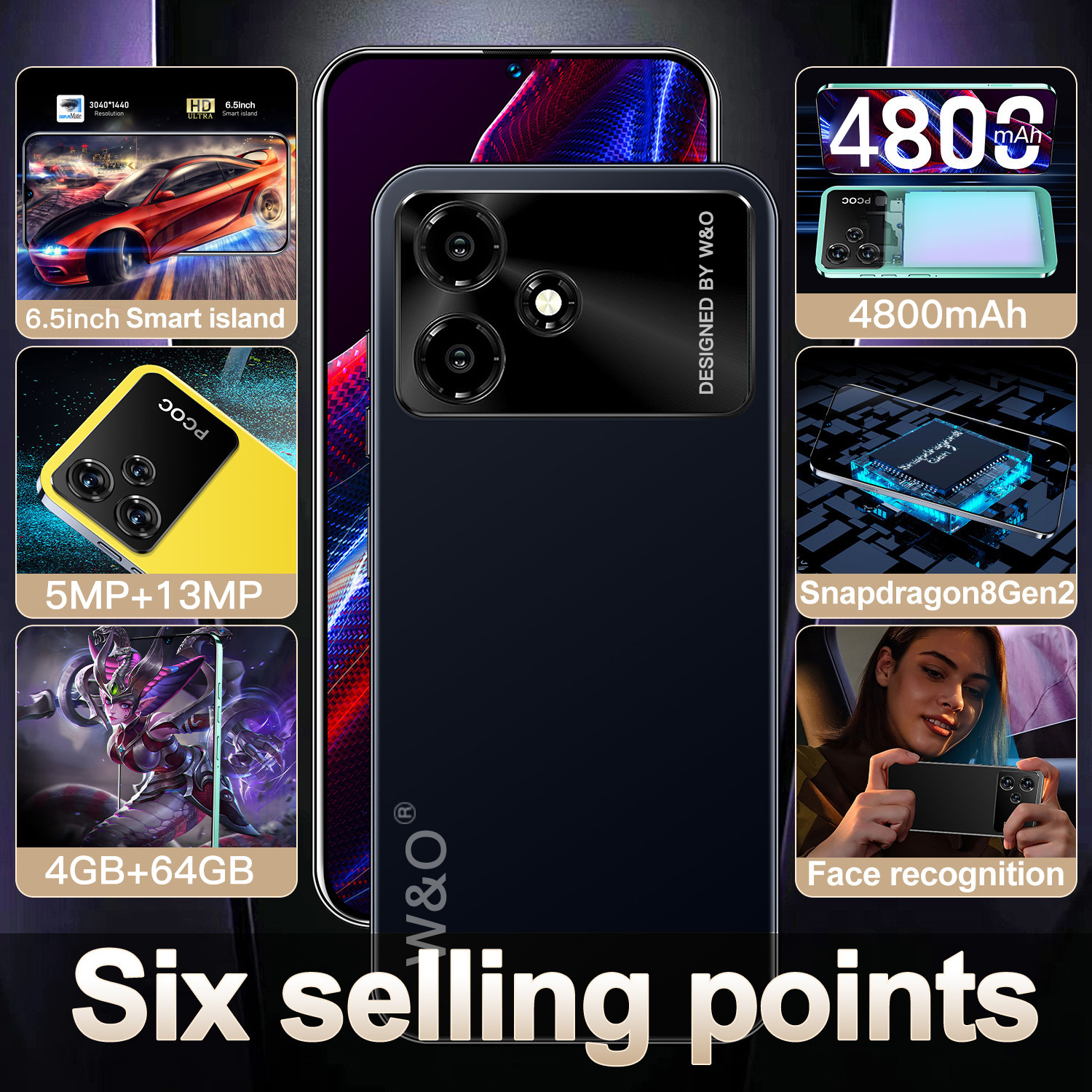 W & O X100 6.8 "슈퍼 대형 스크린 3 32G 안드로이드 4G 스마트 폰 국경 지점 16 512G