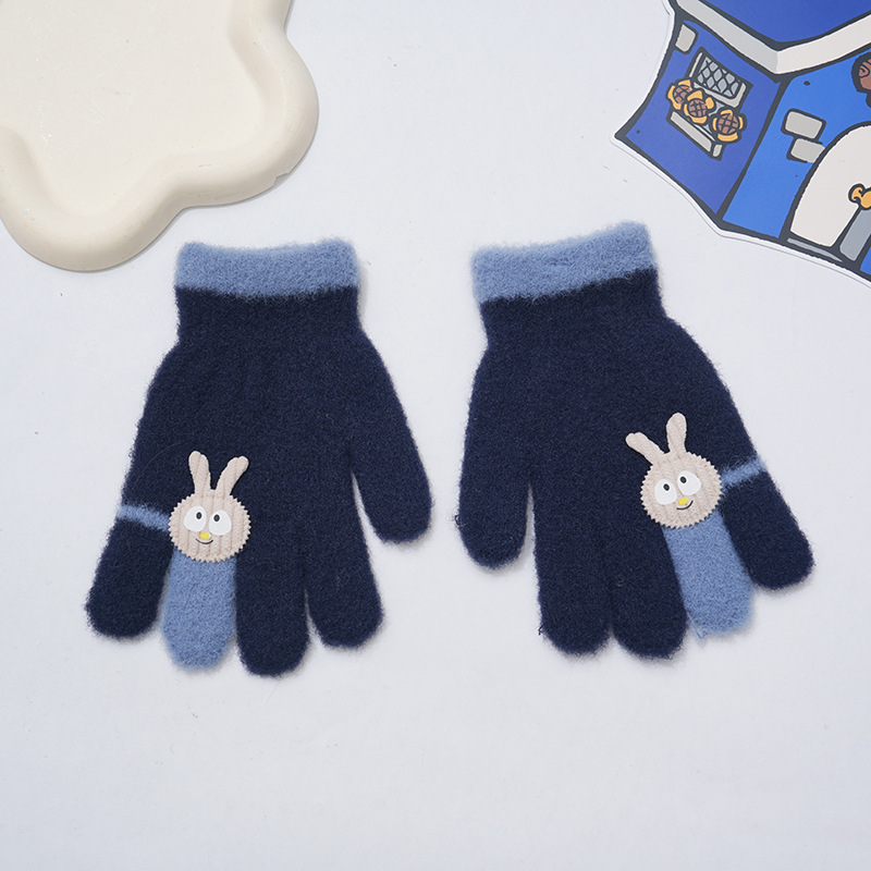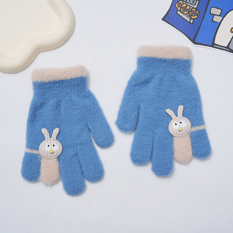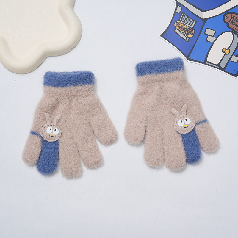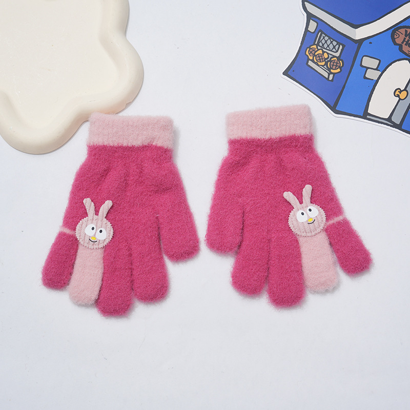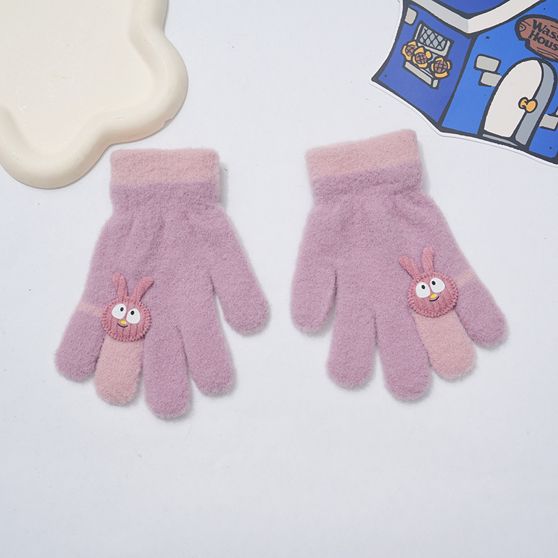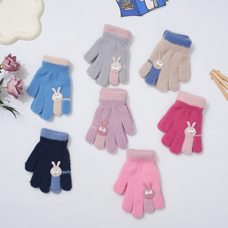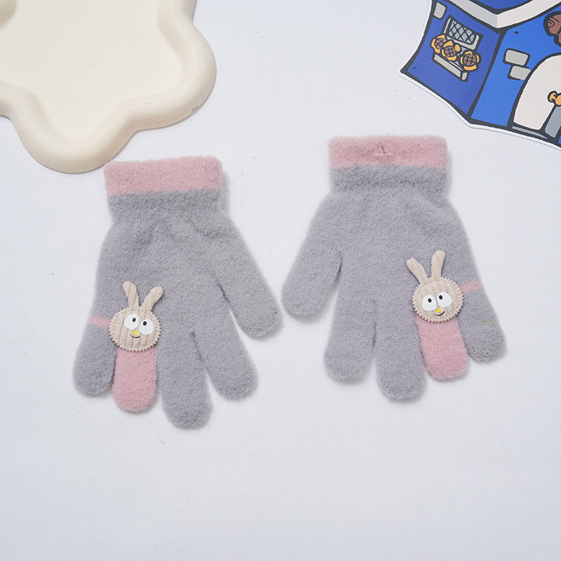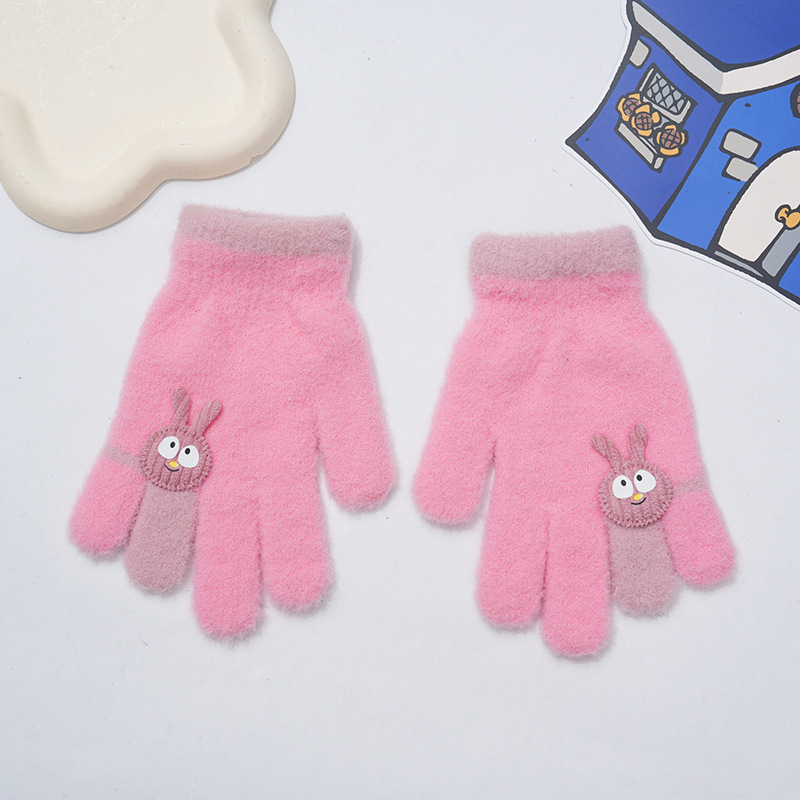 새로운 귀여운 토끼 밍크 벨벳 장갑 소년과 소녀를위한 가을, 겨울 방한 및 따뜻한 다섯 손가락 니트 양모 장갑