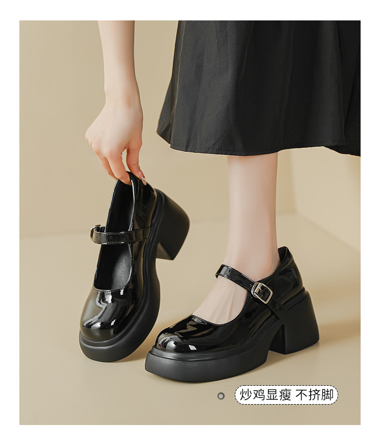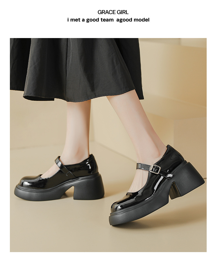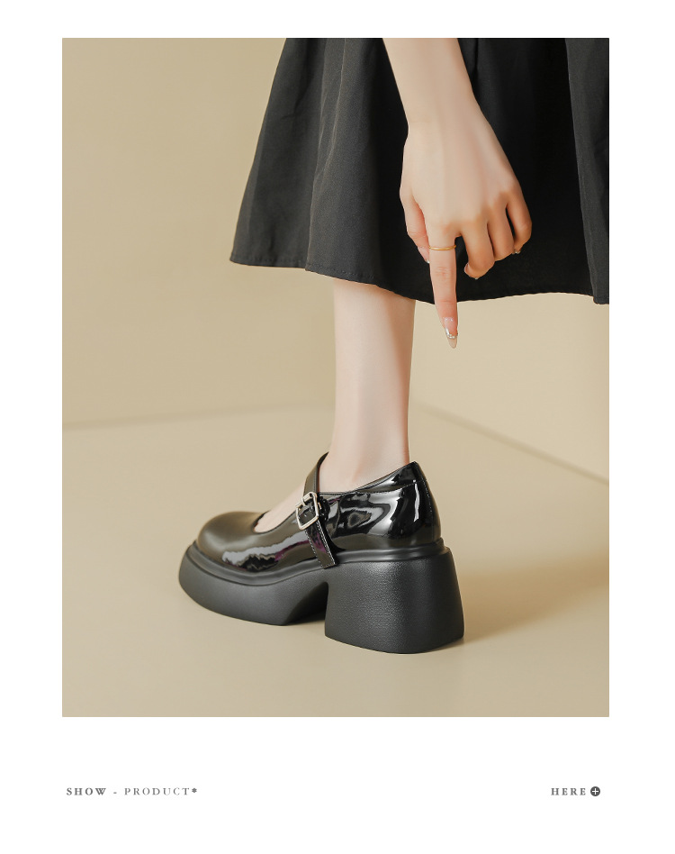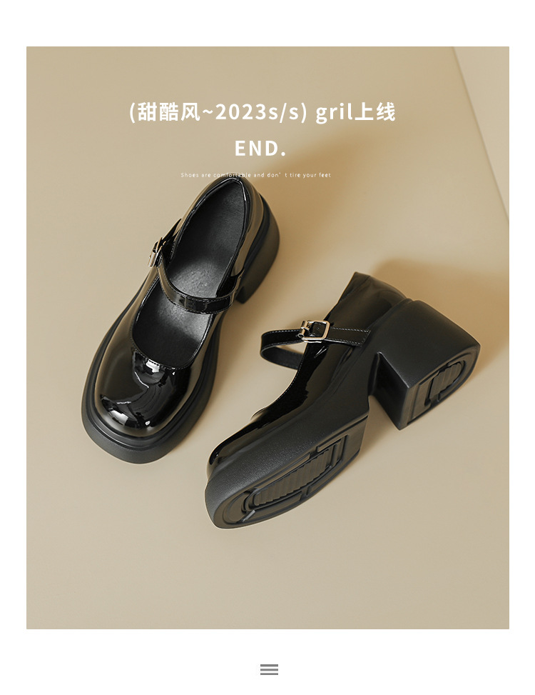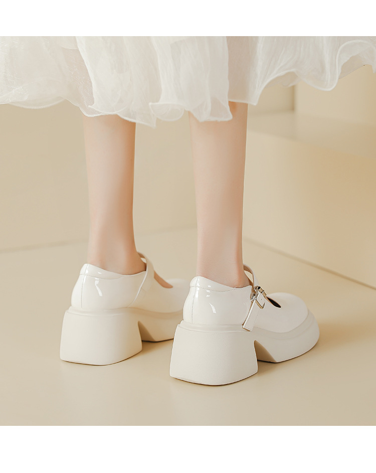 Sweet Girl's thick-shoed Mary Jane shoes 여성용 청키 힐 봄과 여름 새로운 스타일 플랫폼 밑창 일본식 싱글 레이어 신발 증가 작은 가죽 신발스토어 가기