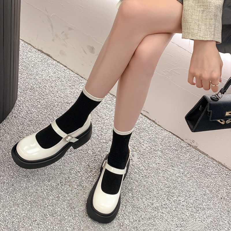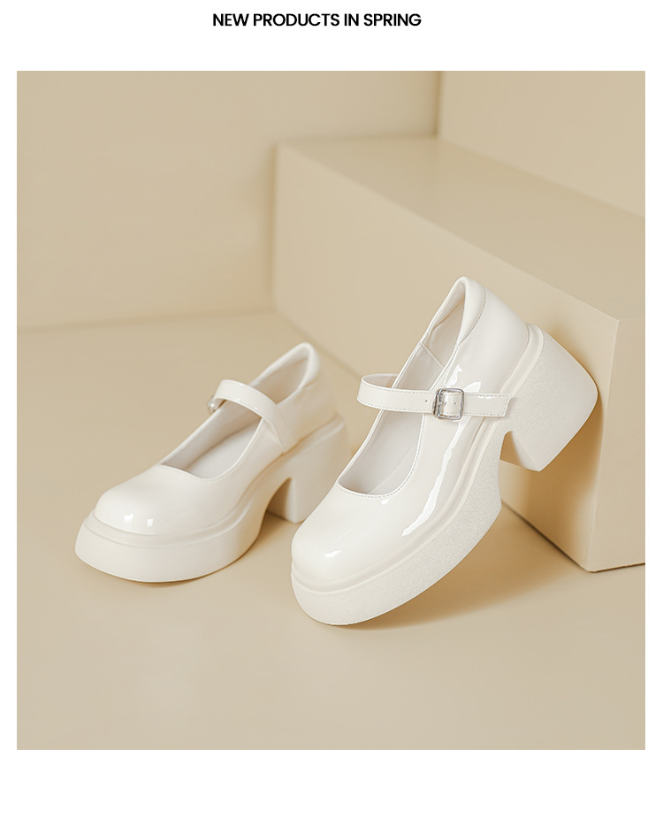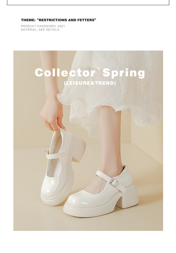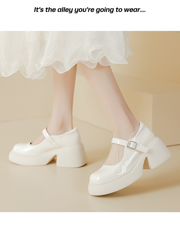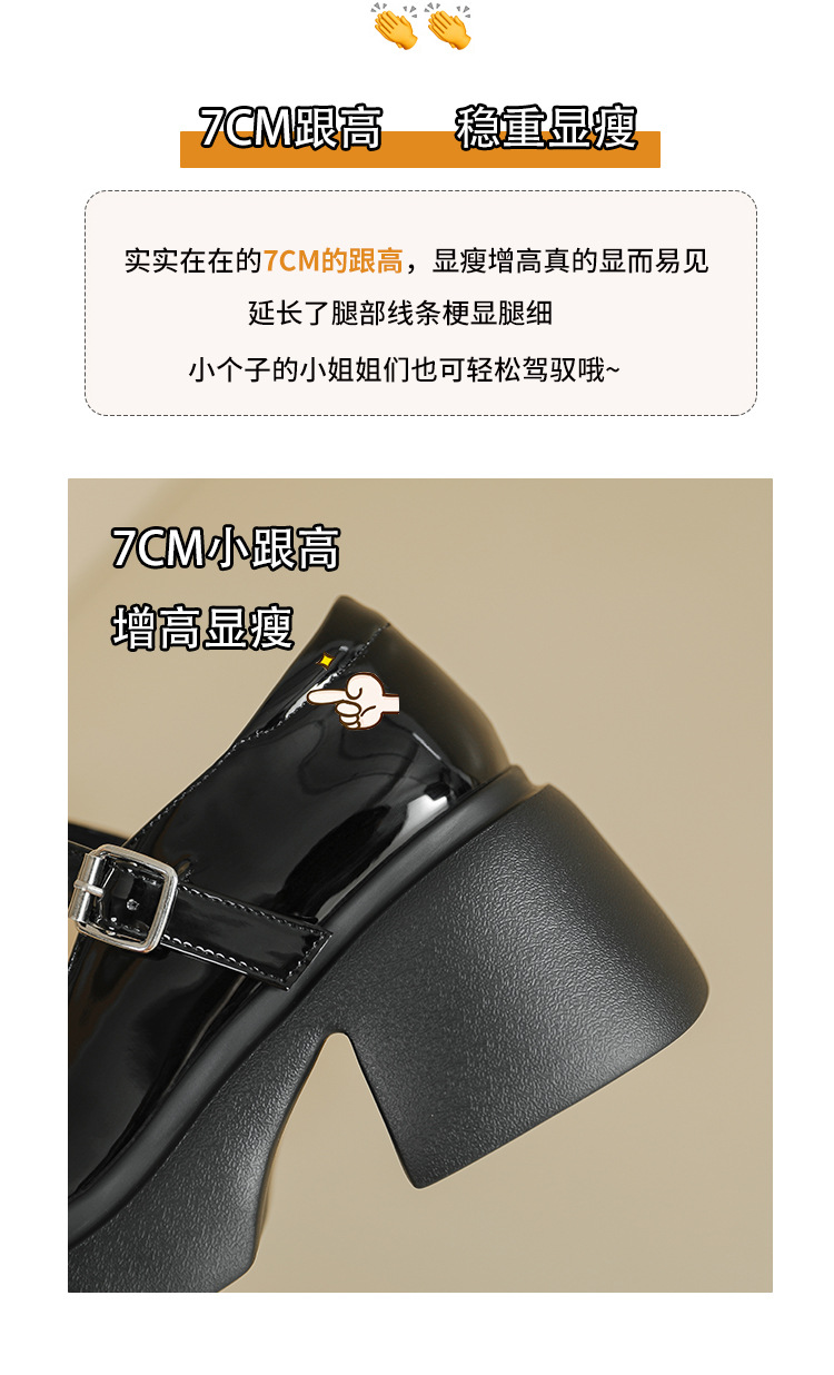 Sweet Girl's thick-shoed Mary Jane shoes 여성용 청키 힐 봄과 여름 새로운 스타일 플랫폼 밑창 일본식 싱글 레이어 신발 증가 작은 가죽 신발스토어 가기