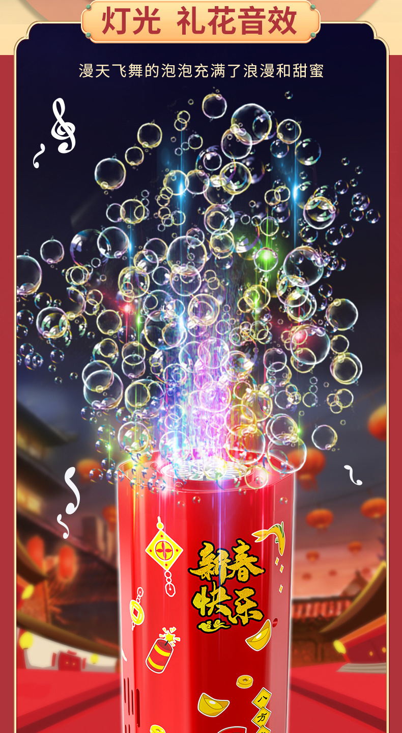 새해 선물 불꽃 놀이 거품 기계 폭죽 소리 빛 음악 어린이 분위기 전기 거품 기계 자동 거품스토어 가기
