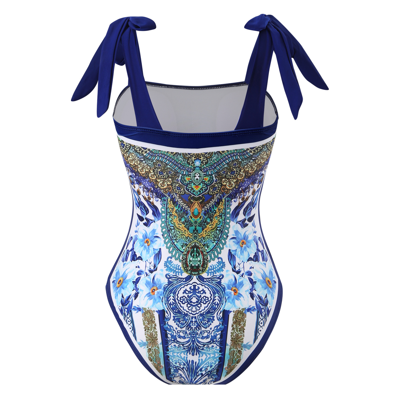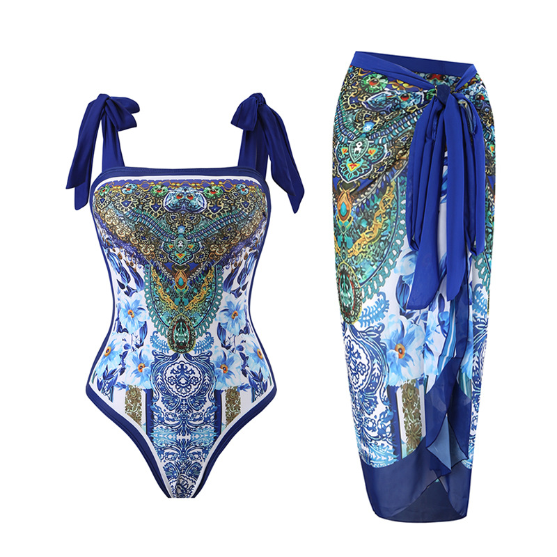 [여성 수영복을 위한 비치 리조트 스타일 슈트] 멀티 컬러 디지털 프린트 트렌디 유럽 및 미국 신형 점프수트 롱 거즈 스커트스토어 가기