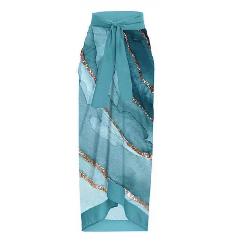 [여성 수영복을 위한 비치 리조트 스타일 슈트] 멀티 컬러 디지털 프린트 트렌디 유럽 및 미국 신형 점프수트 롱 거즈 스커트
