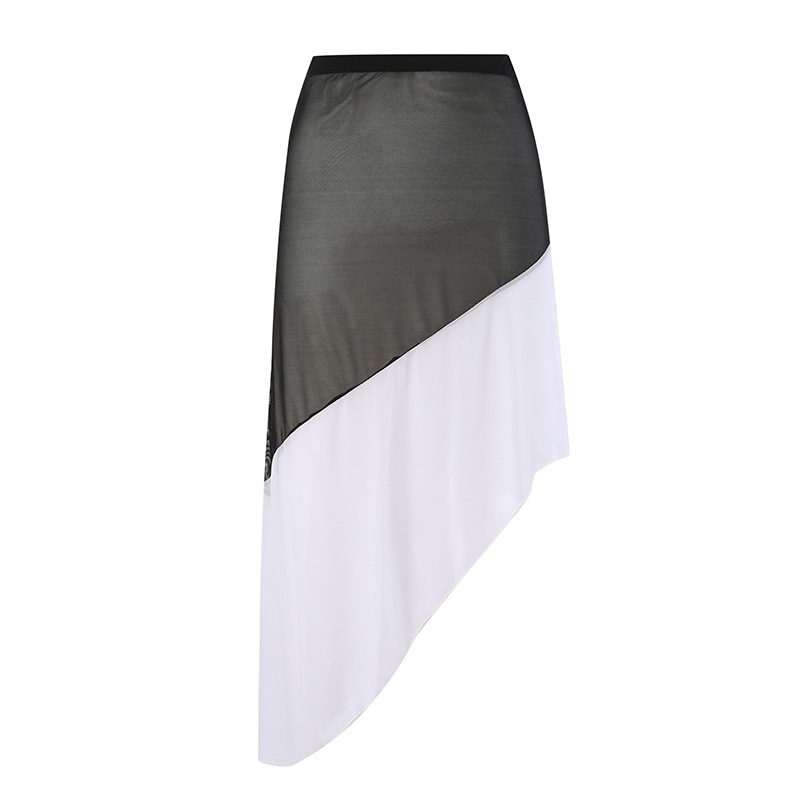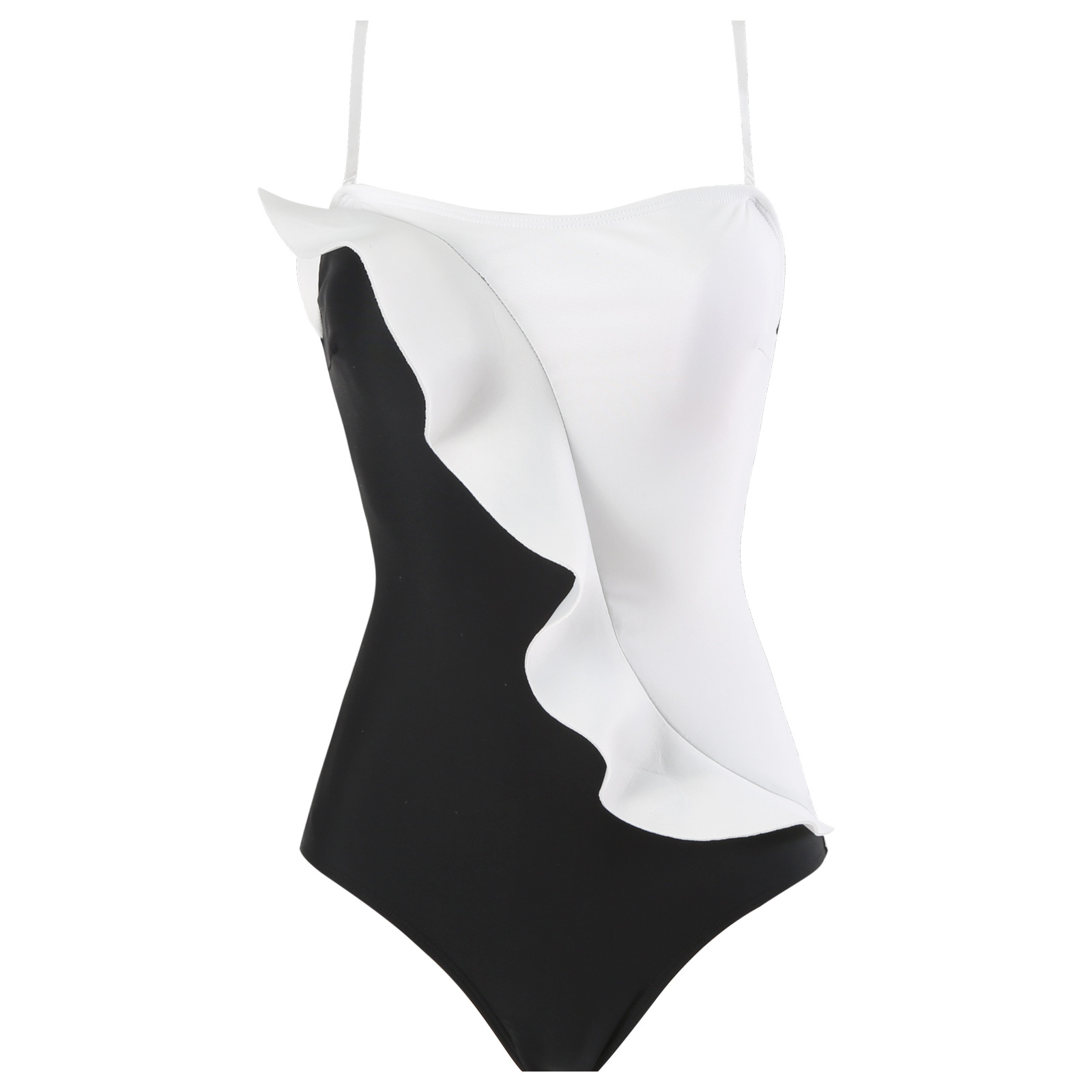 [여성용 보헤미안 스타일 휴가 수영복] 오블리크 러플 컬러 블록 점프 슈트 자외선 차단 비치 스커트 유럽 및 미국