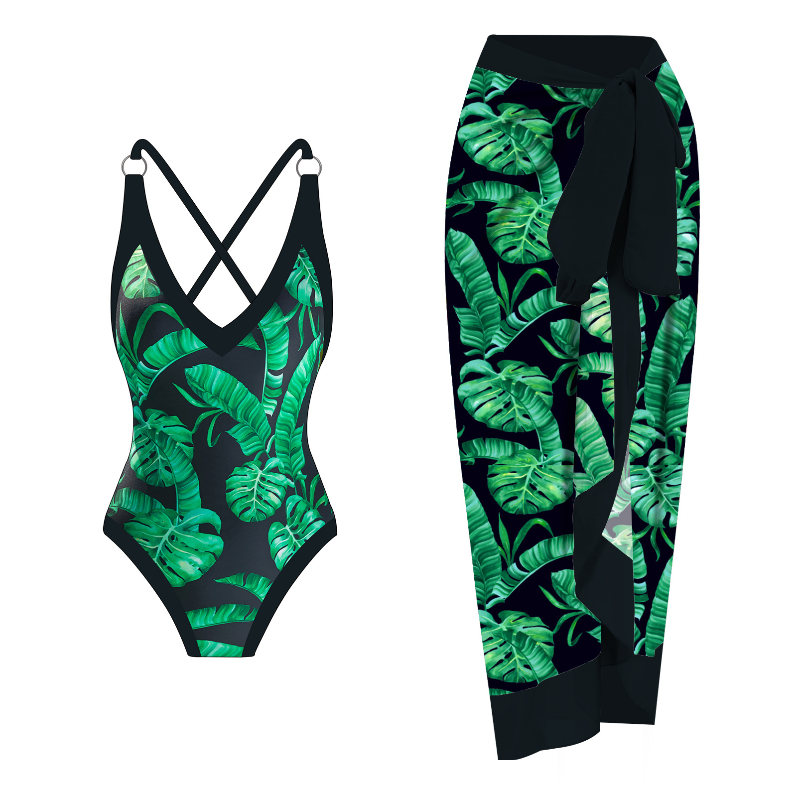 [여성용 리조트 스타일 새 수영복] 패셔너블한 멀티 컬러 프린트 점프수트 자외선 차단 거즈 스커트 유럽 및 미국 여성 수영복