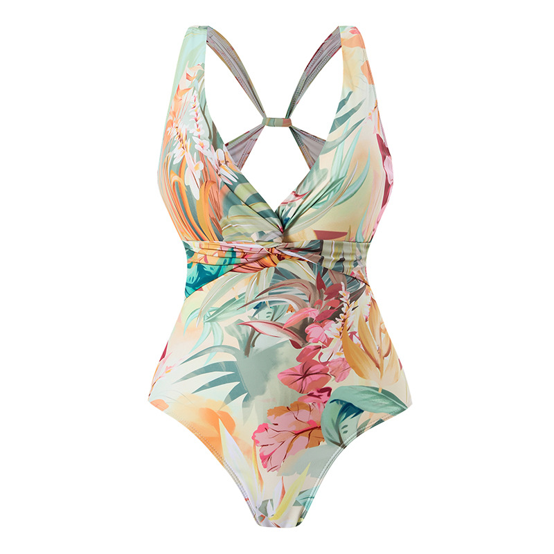[유럽과 미국의 여성 수영복 세트] 패셔너블한 프린트 점프수트 자외선 차단 거즈 스커트 해변 온천 리조트 스타일 아마존스토어 가기