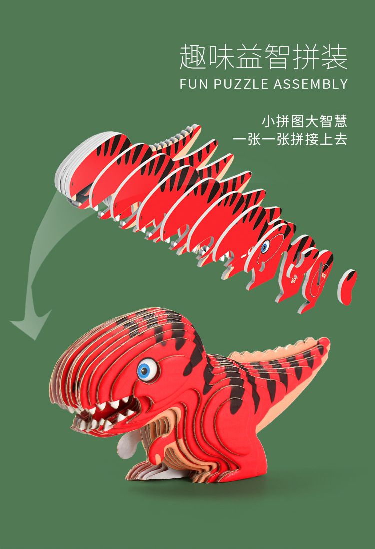 어린이 만화 공룡 3D 퍼즐 장난감 DIY 교육 창조적 인 종이 동물 모델 조립 국경 배치스토어 가기