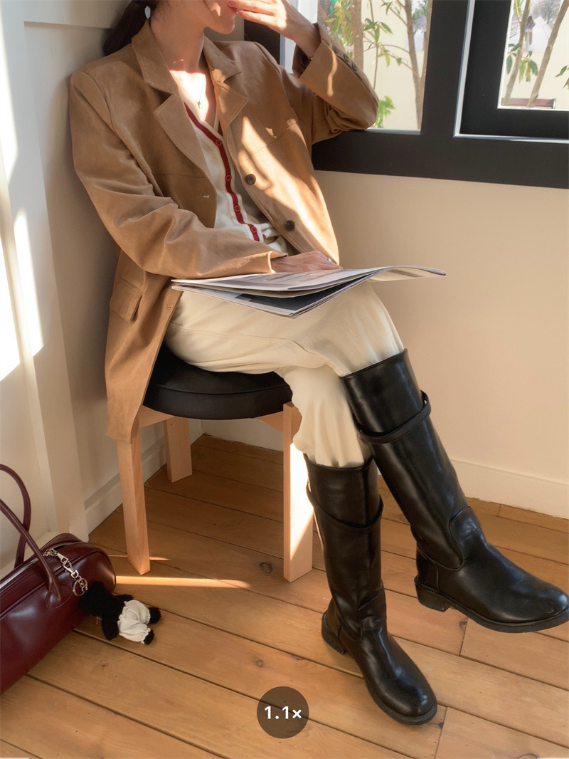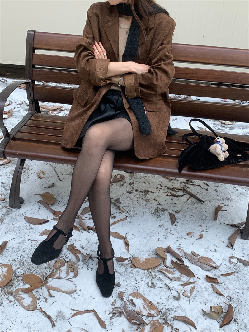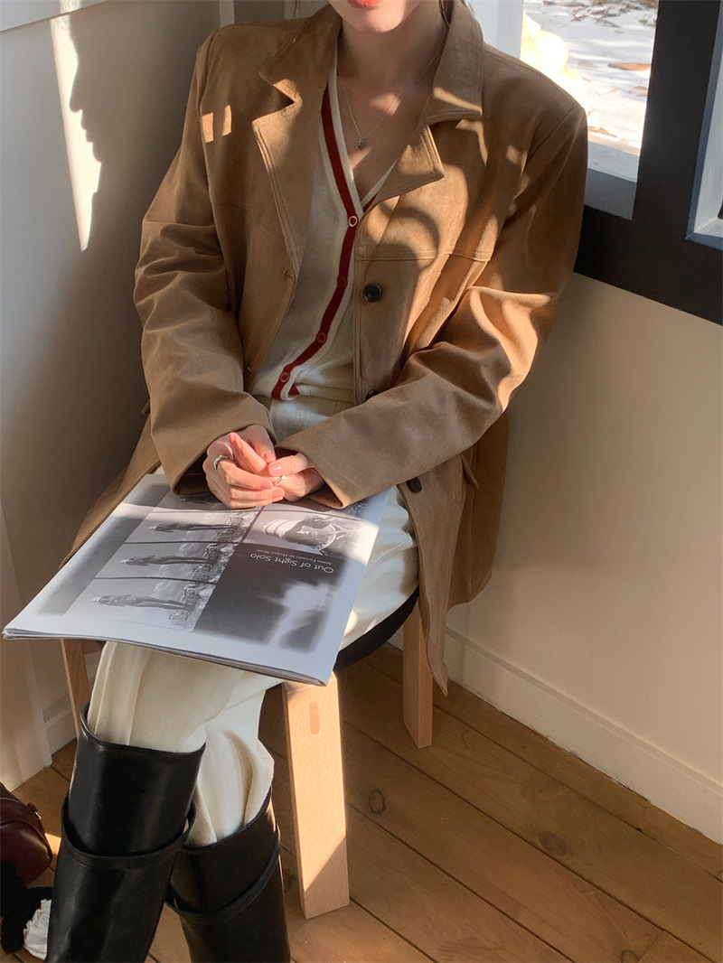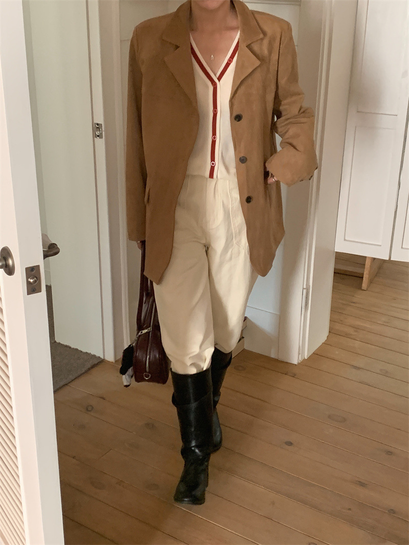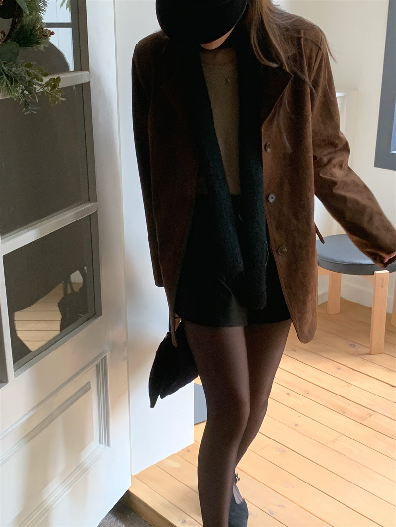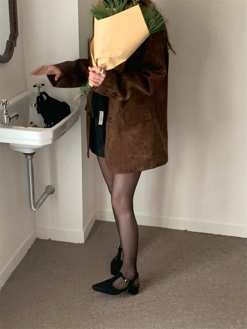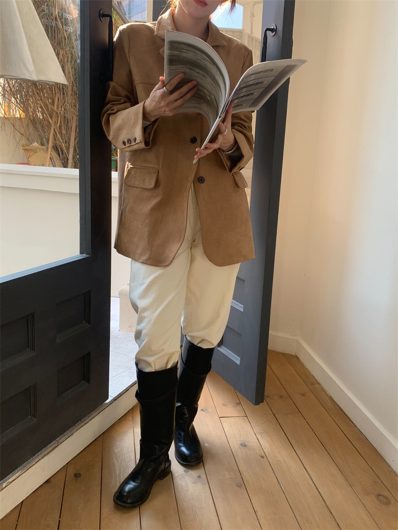 가을 겨울 한국 스타일 패셔너블한 프렌치 레트로 메일라드 컬러 가죽벨벳 루즈핏 캐주얼 수트 재킷 2가지 색상스토어 가기