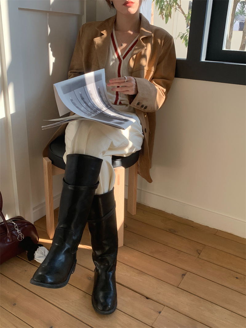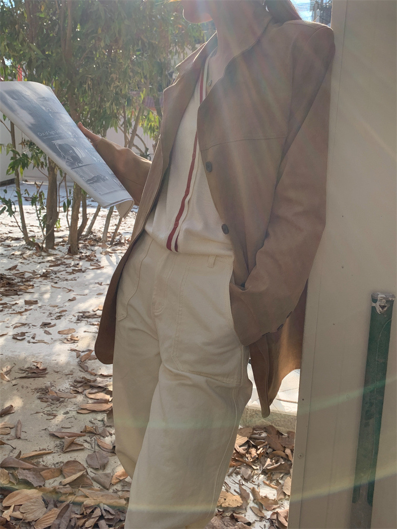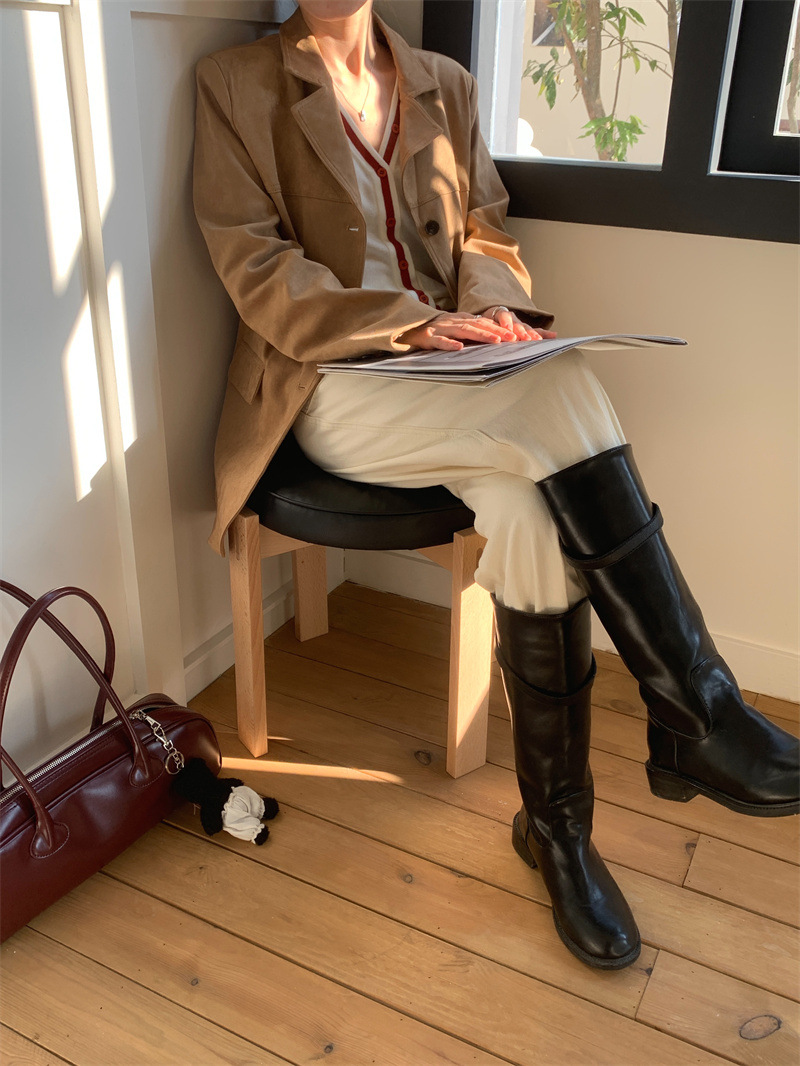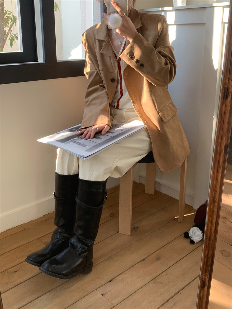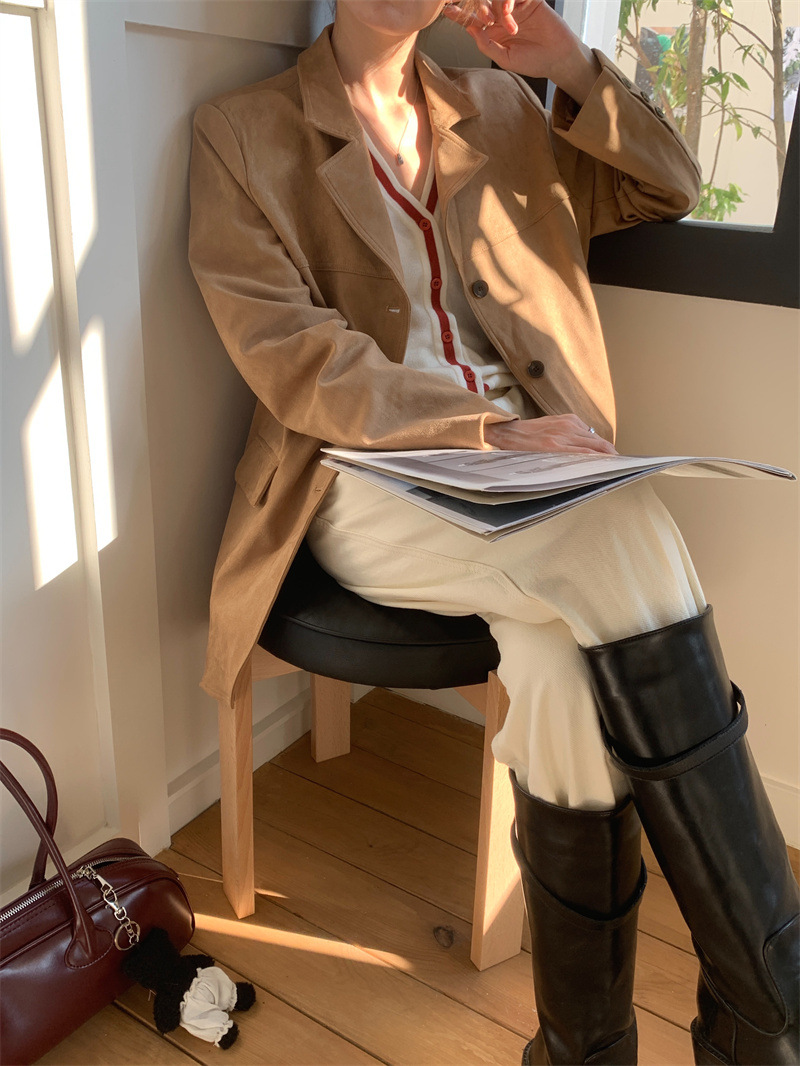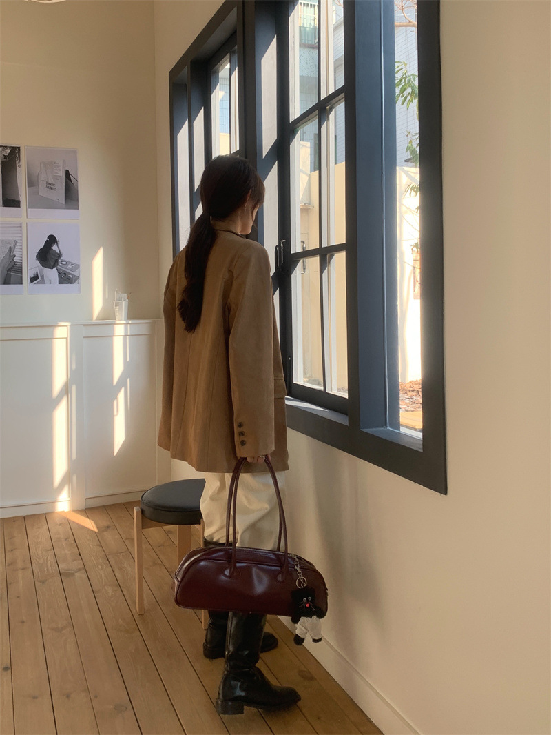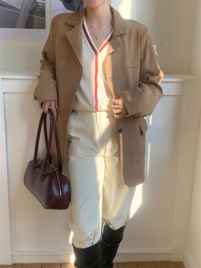 가을 겨울 한국 스타일 패셔너블한 프렌치 레트로 메일라드 컬러 가죽벨벳 루즈핏 캐주얼 수트 재킷 2가지 색상