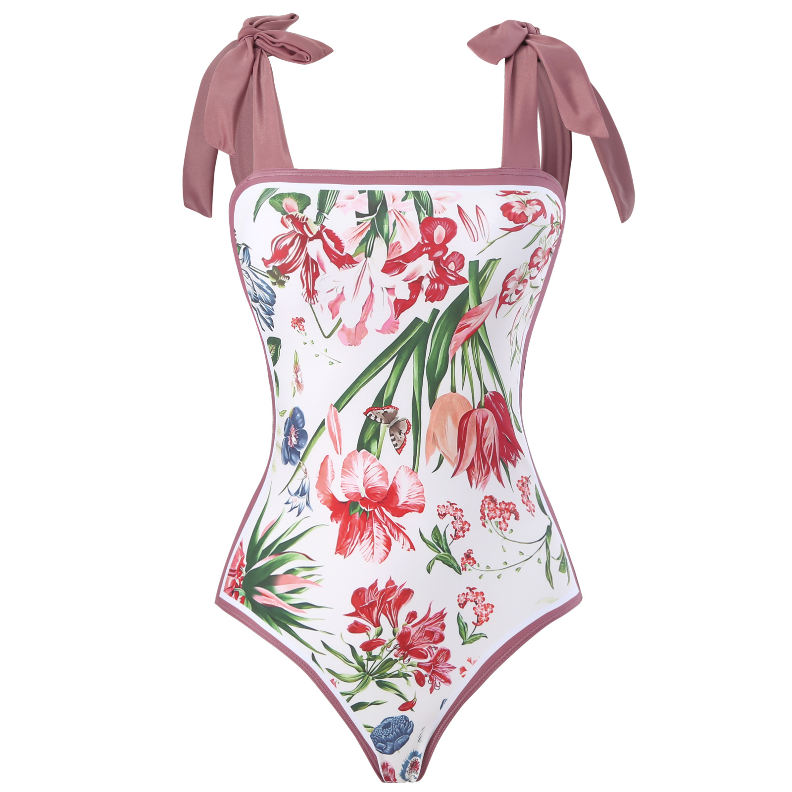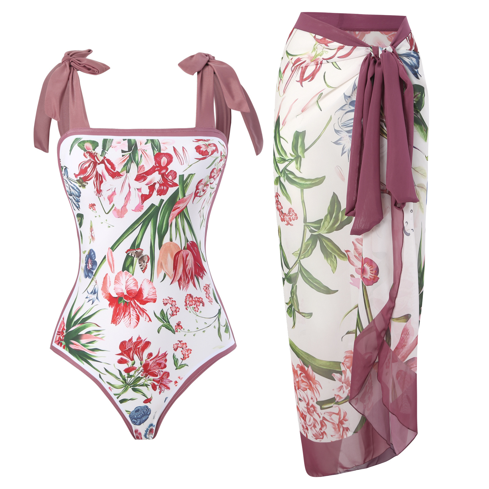 [유럽과 미국의 리조트 스타일 새로운 여성 수영복] 디지털 프린트 멀티 컬러 점프 슈트 자외선 차단 쉬폰 스커트 Amazon