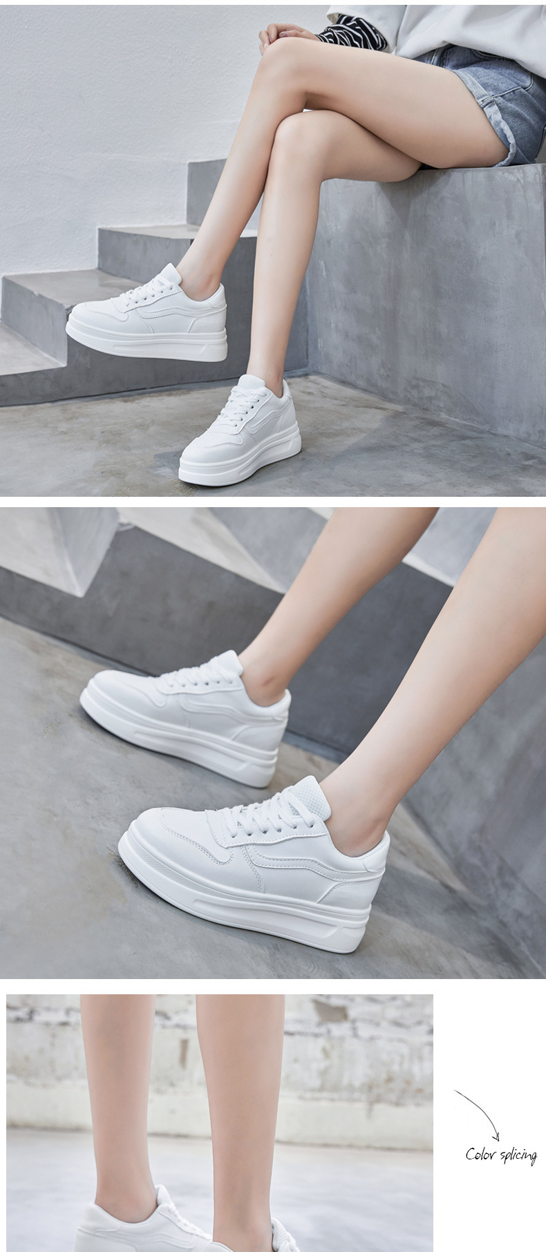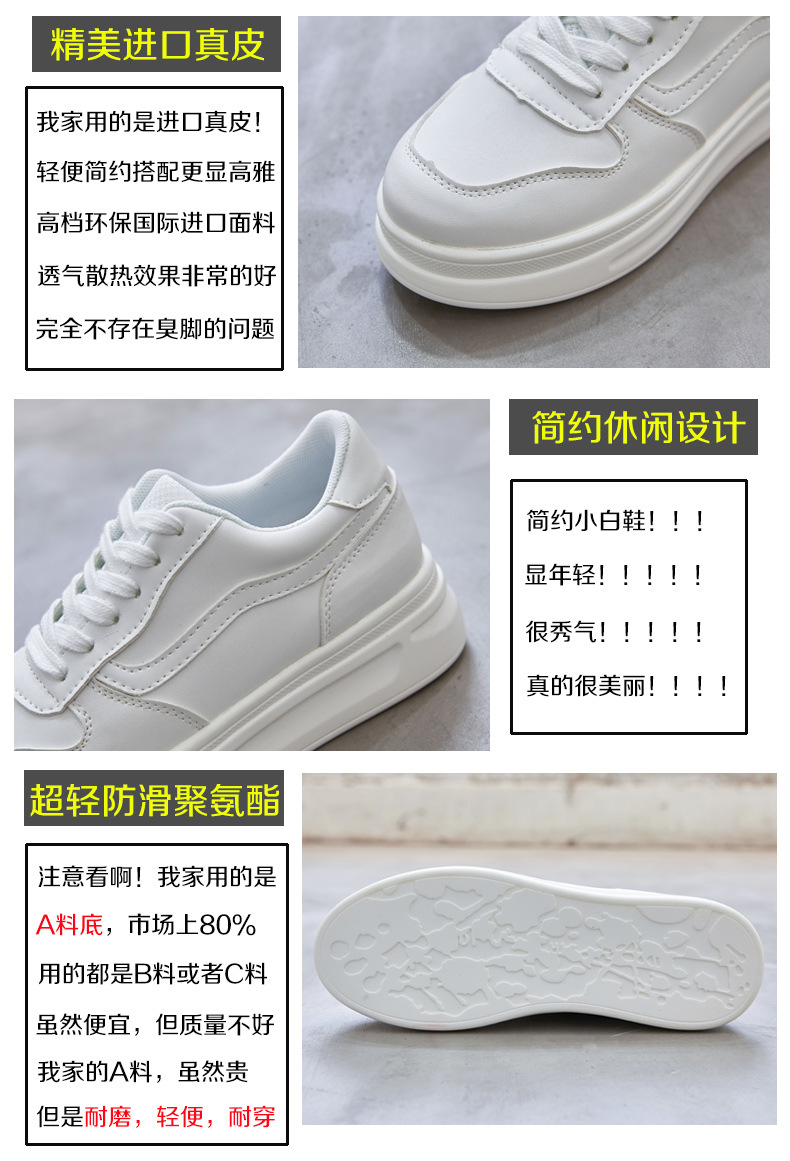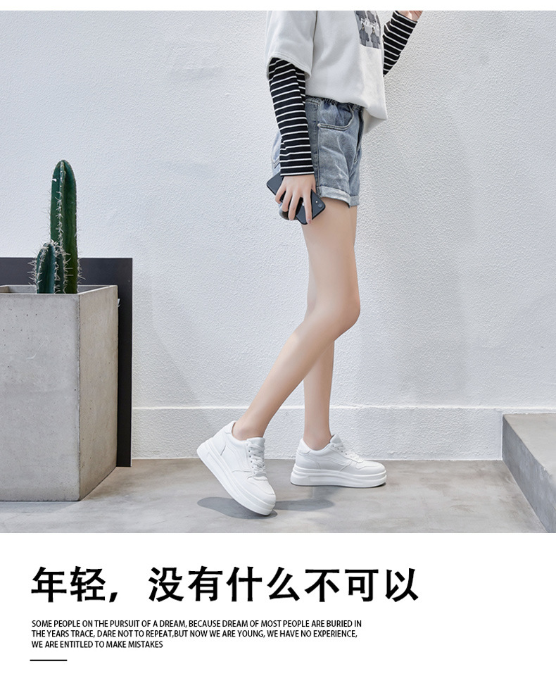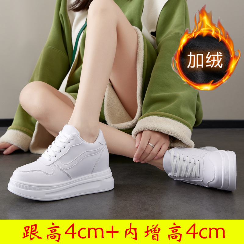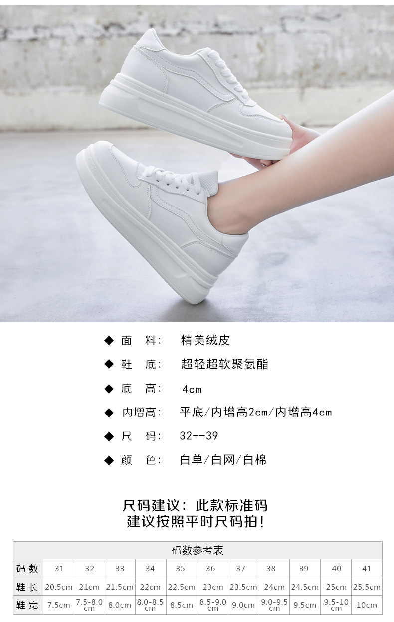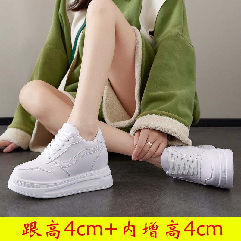 스몰 사이즈 신발 31-34 보이지 않는 내부 높이 증가 8cm 흰색 신발 여성의 두꺼운 바닥 캐주얼 경량 올 매치 가죽 표면 봄, 여름, 가을, 겨울스토어 가기
