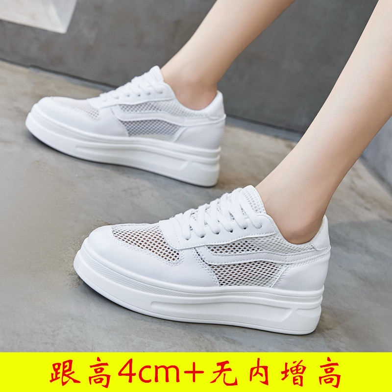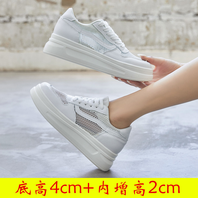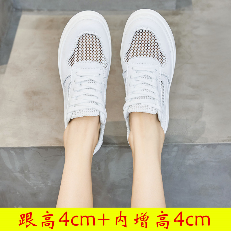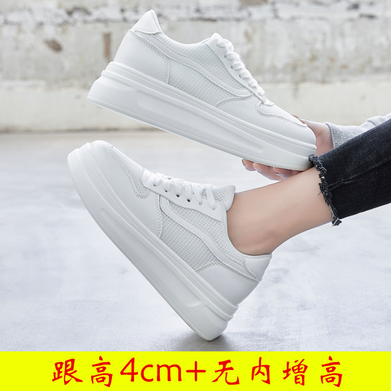 스몰 사이즈 신발 31-34 보이지 않는 내부 높이 증가 8cm 흰색 신발 여성의 두꺼운 바닥 캐주얼 경량 올 매치 가죽 표면 봄, 여름, 가을, 겨울