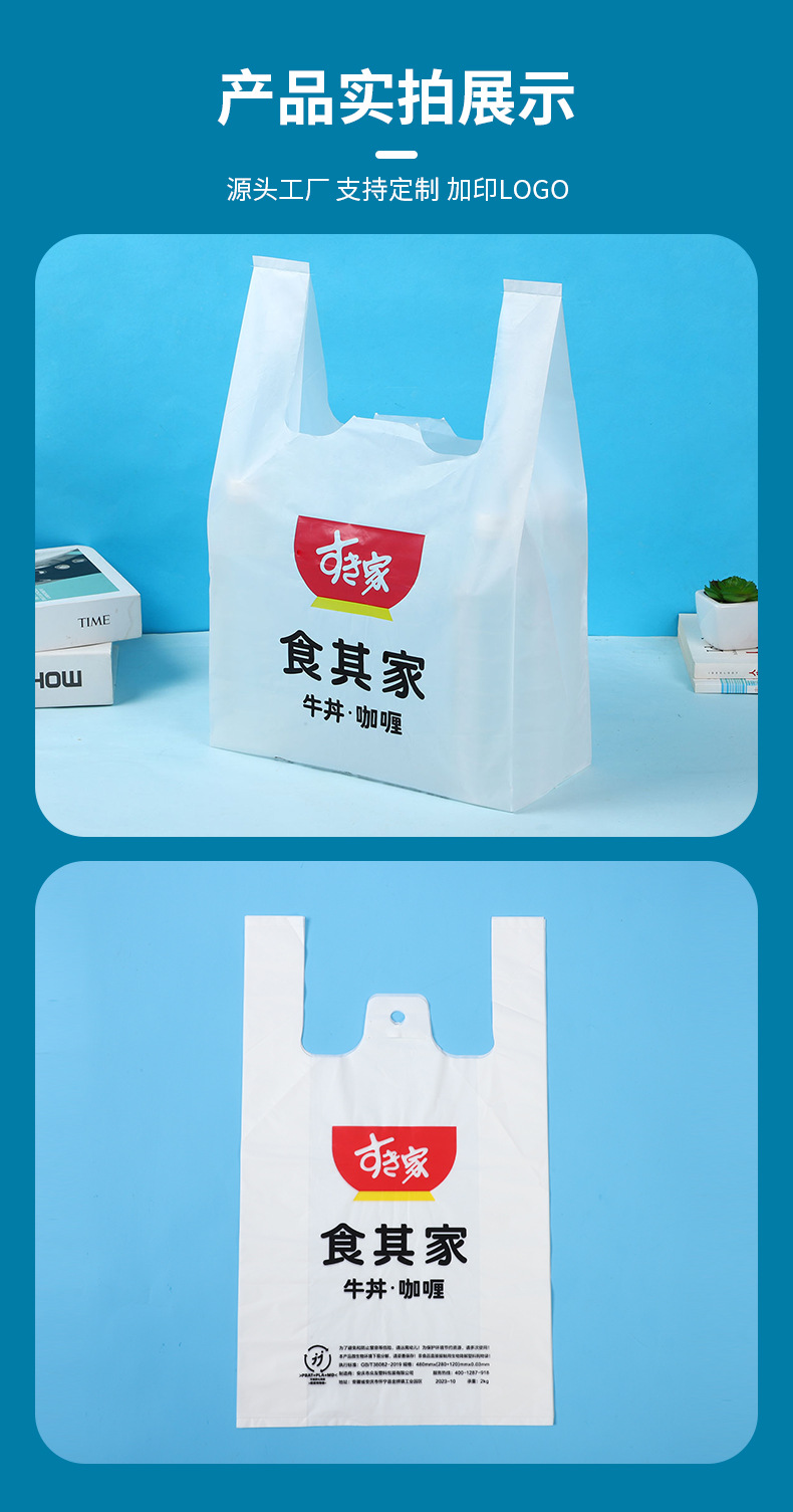 플라스틱 핸드백 생분해 성 인쇄 로고 과일 및 야채 포장 가방 테이크 아웃 포장 가방 공장 직접 판매