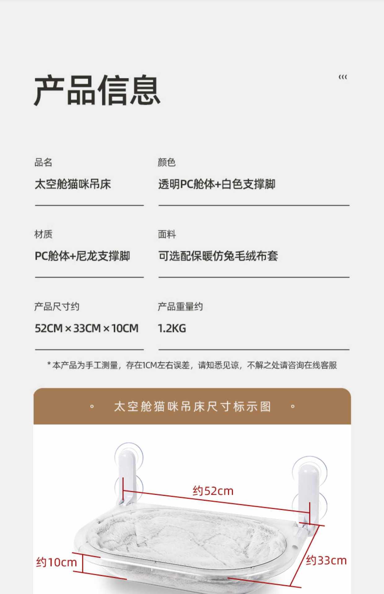 • 침대 표면은 약 52*33*10cm입니다.