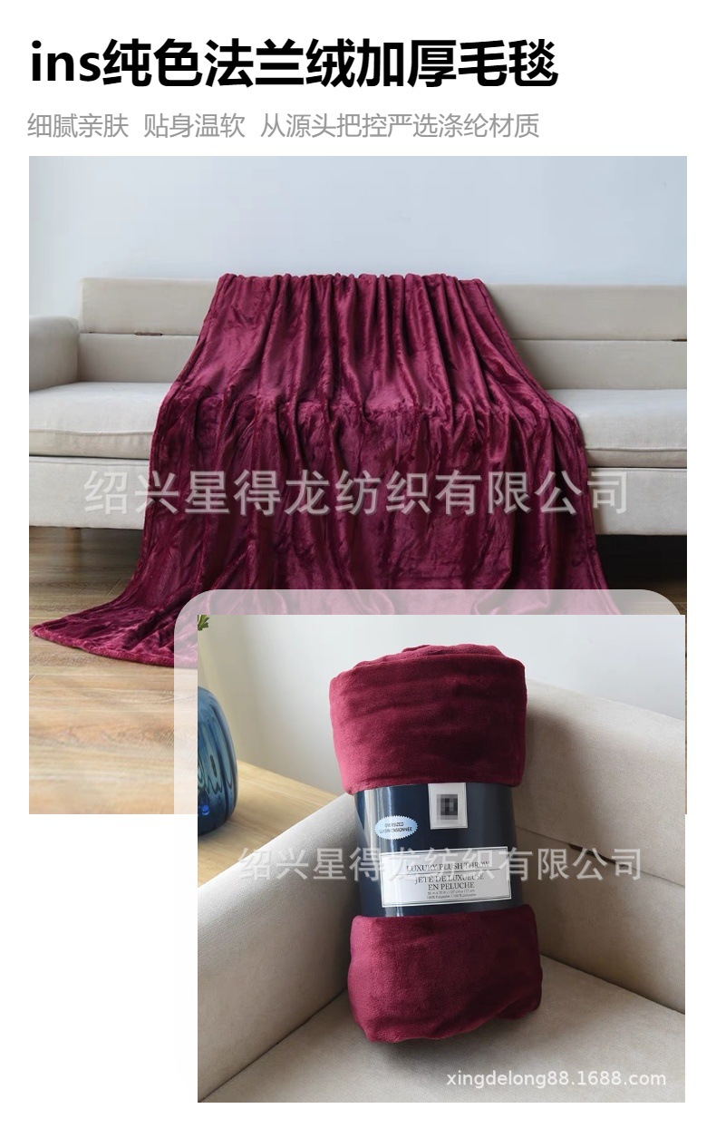부드럽고 피부 친화적인 편안한 단색 두꺼운 플란넬 담요, 단색 산호 벨벳 침대 시트, 사무실 낮잠 무릎 담요스토어 가기