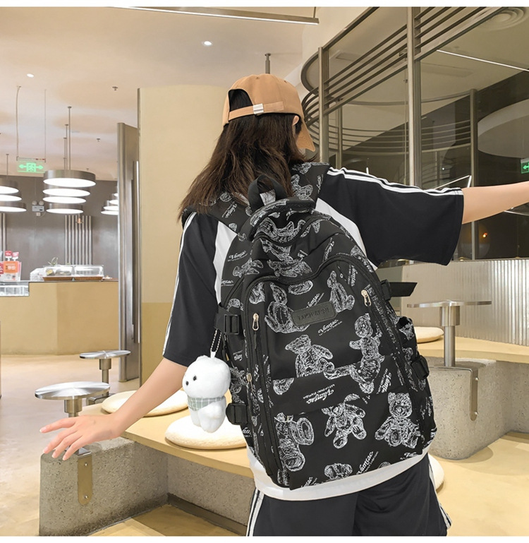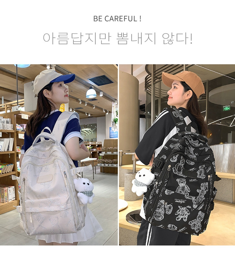 새로운 대용량 곰 배낭 대학생 가방 ins 고급스러운 패션 캐주얼 배낭 경량 소녀스토어 가기