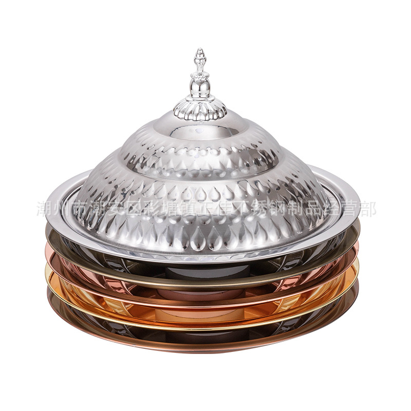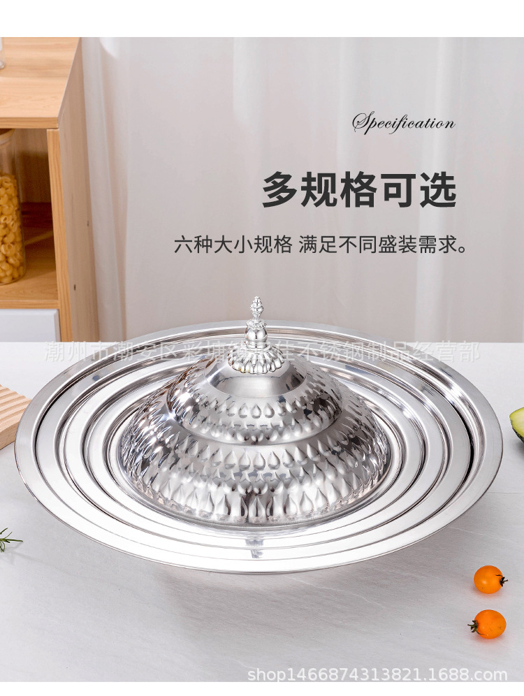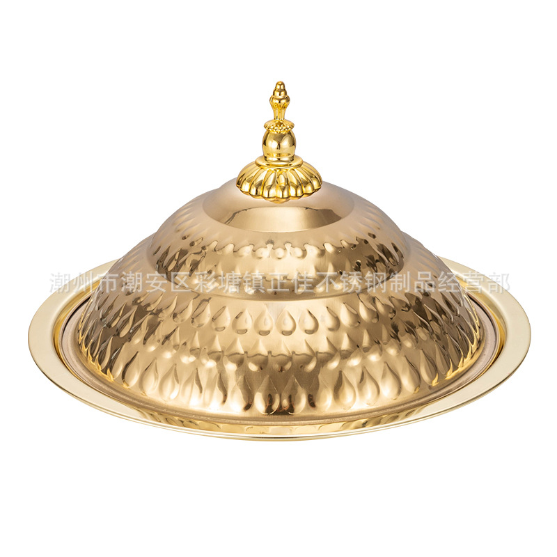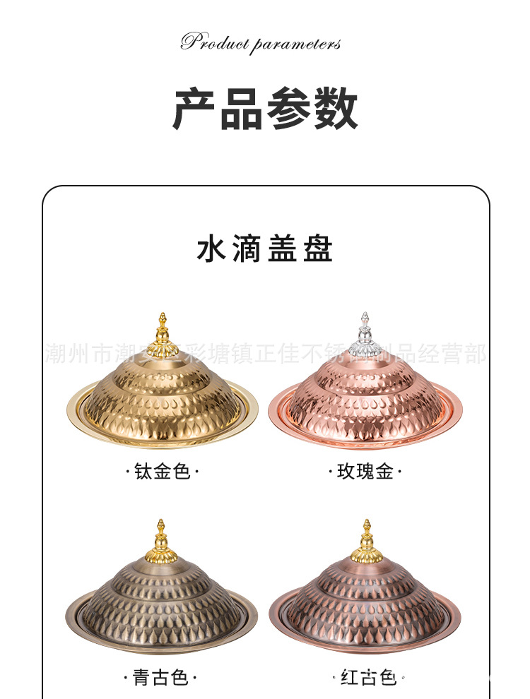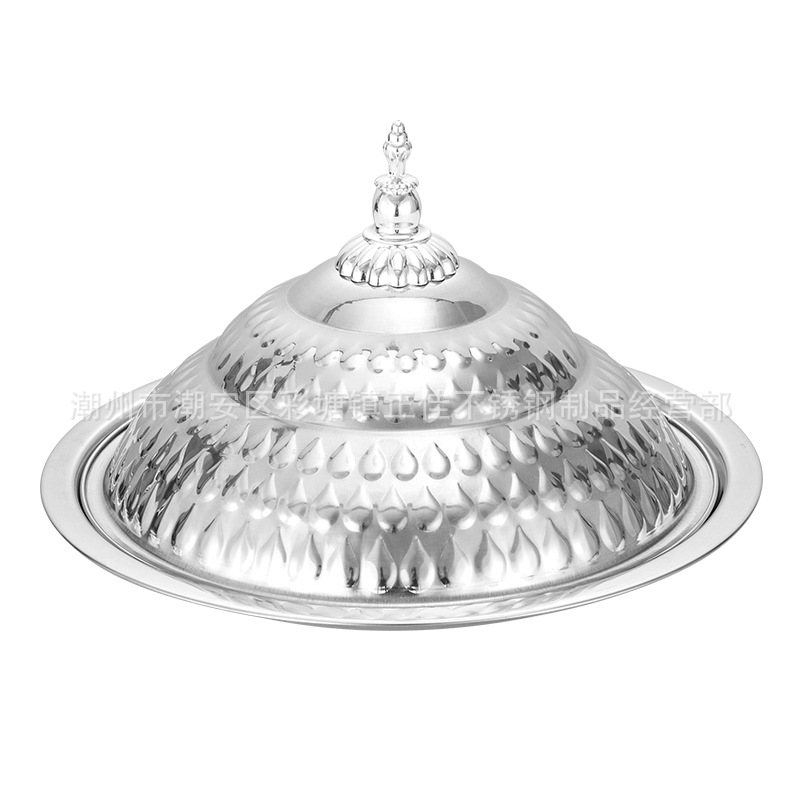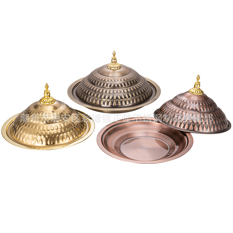 도매 중동 스테인레스 스틸 워터 드롭 커버 플레이트 빈티지 태국 공물 플레이트 인쇄 과일 플레이트 뚜껑 캔디 플레이트 디스크