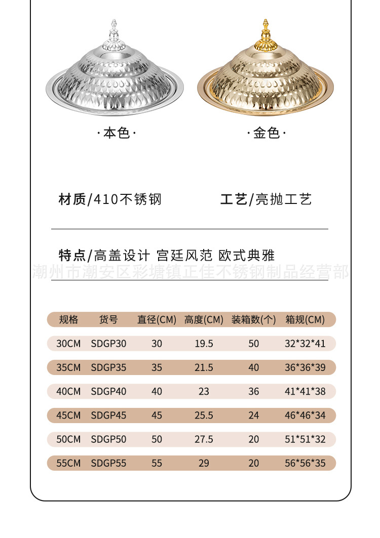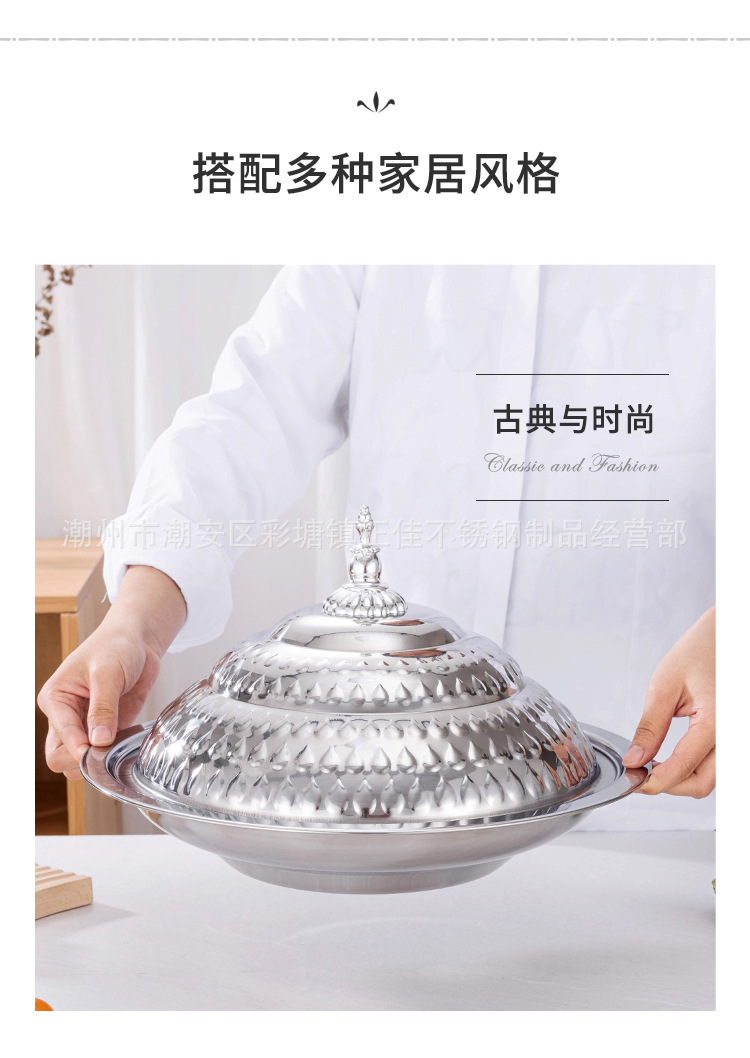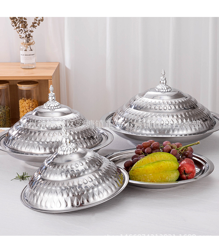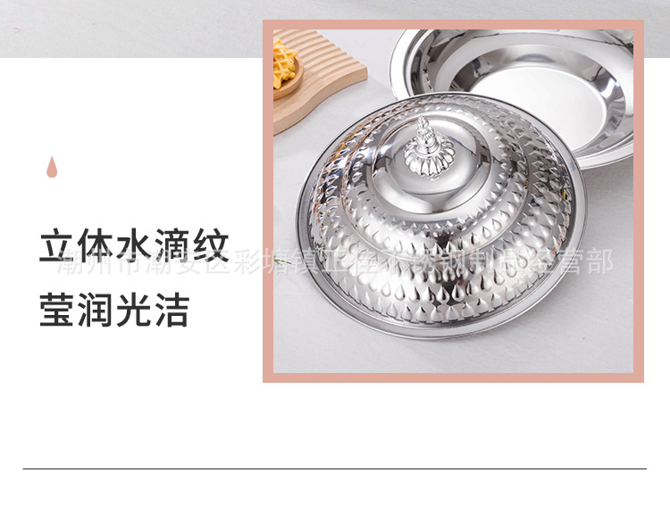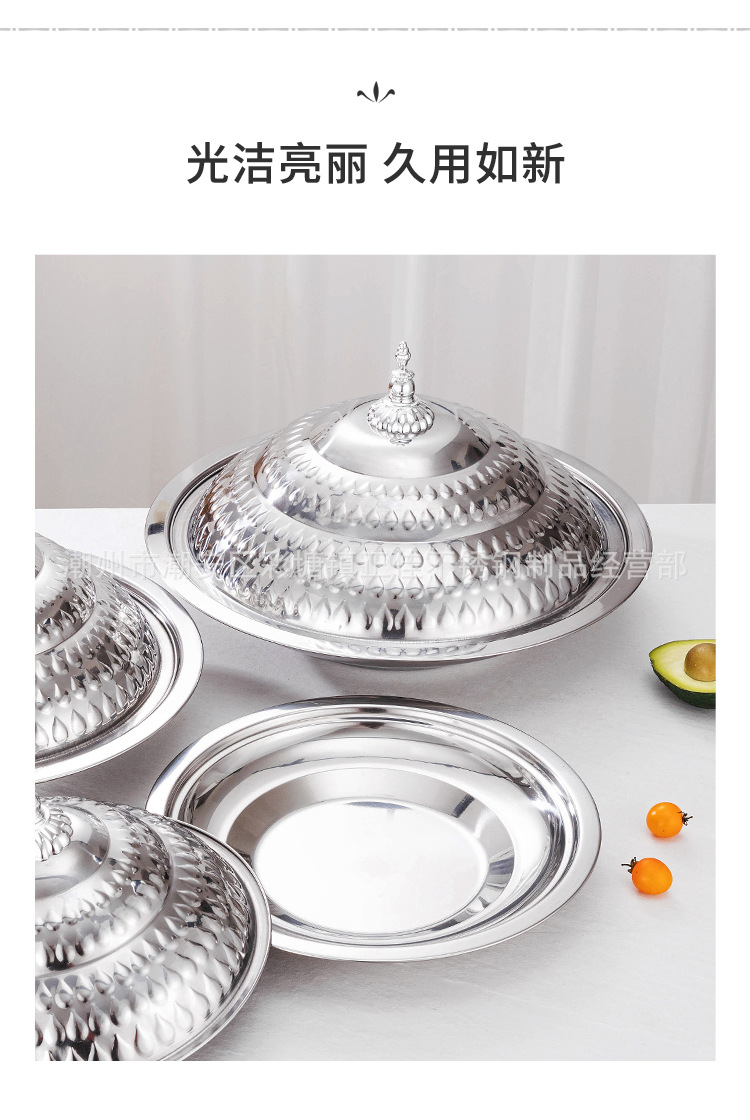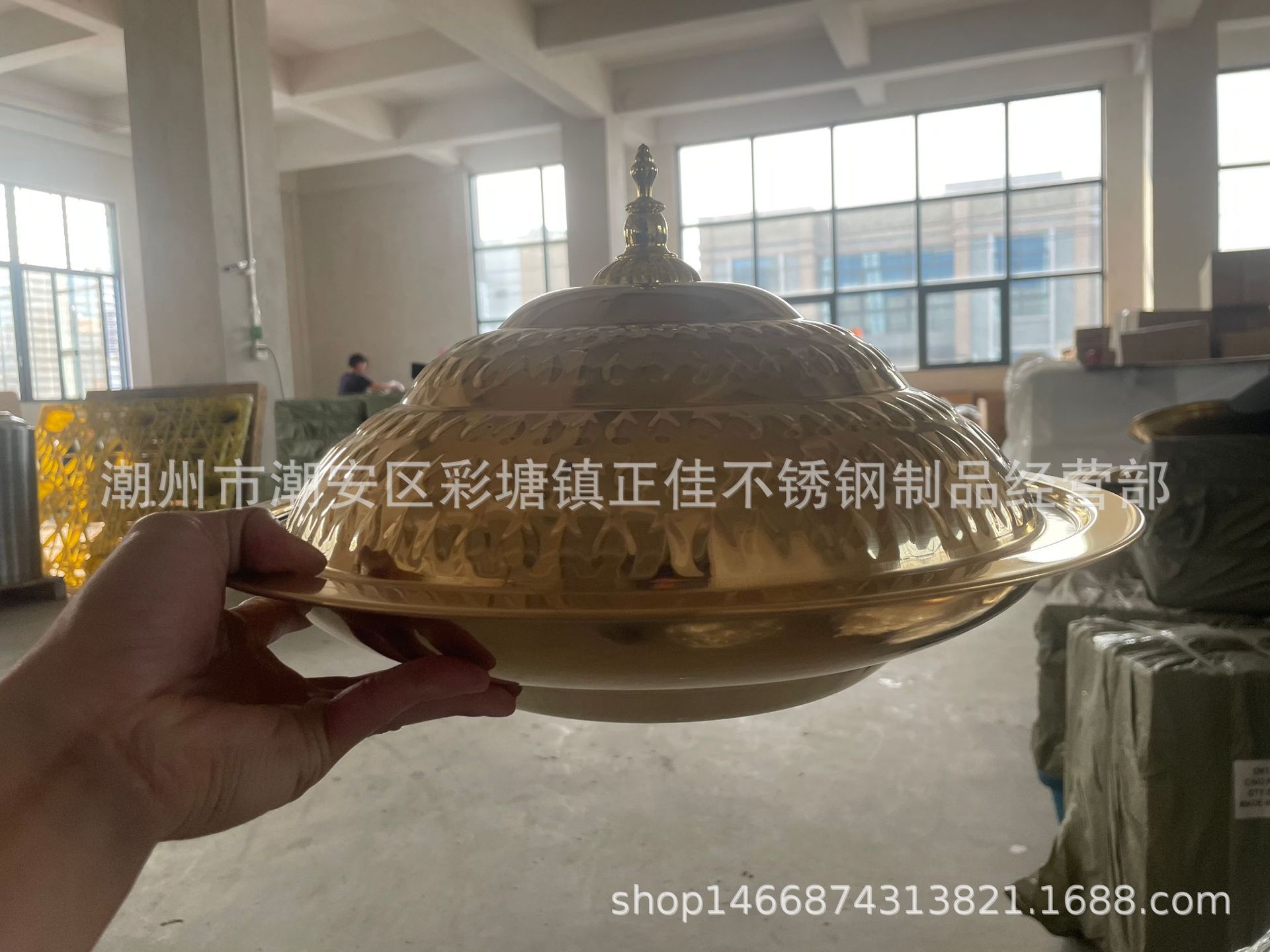 도매 중동 스테인레스 스틸 워터 드롭 커버 플레이트 빈티지 태국 공물 플레이트 인쇄 과일 플레이트 뚜껑 캔디 플레이트 디스크