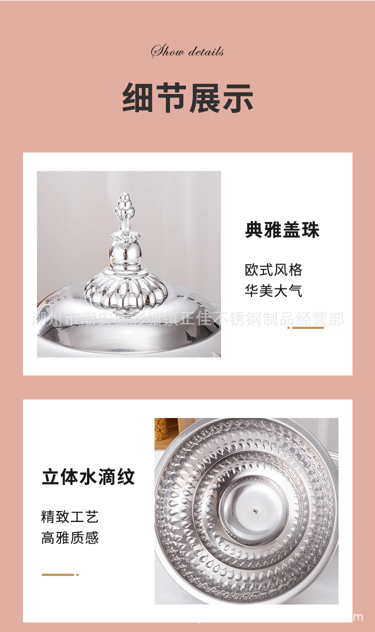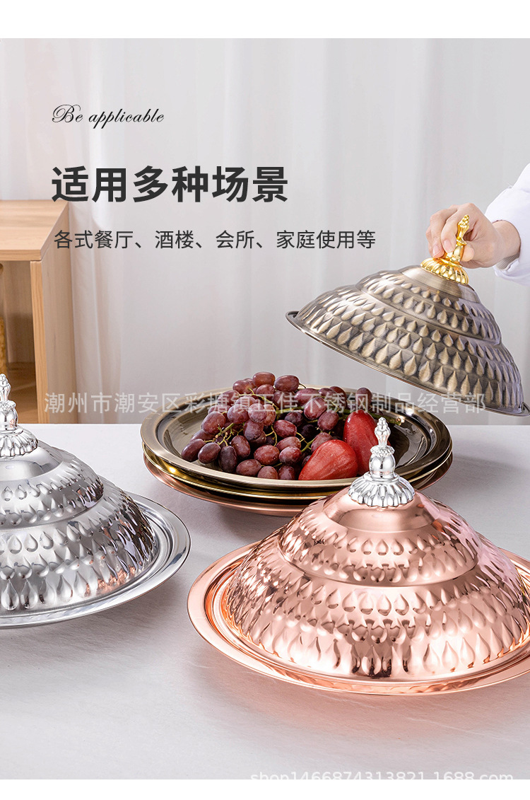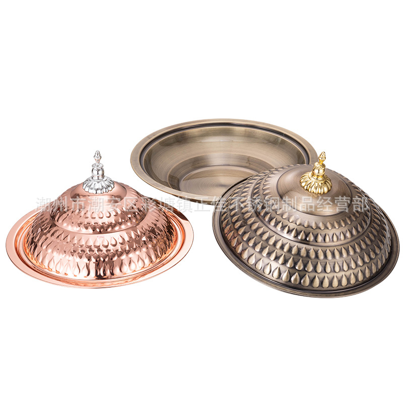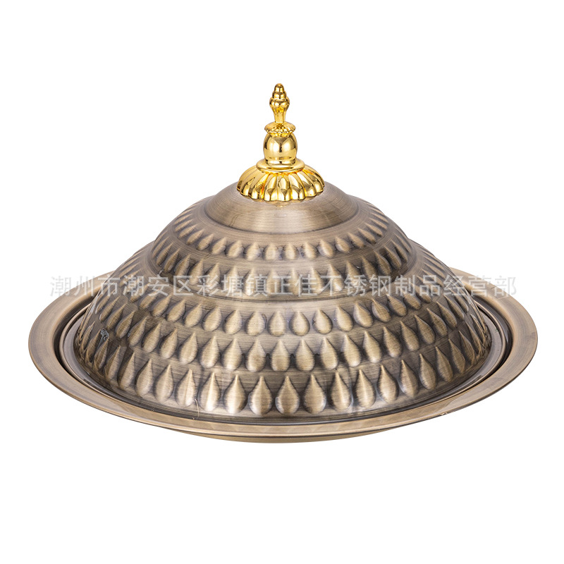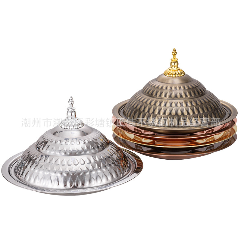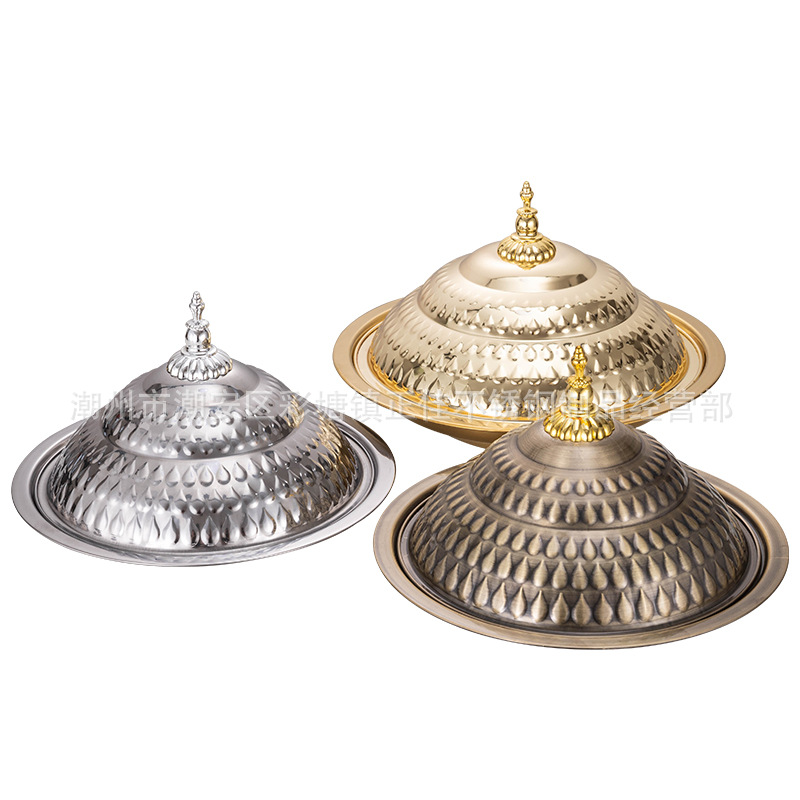 도매 중동 스테인레스 스틸 워터 드롭 커버 플레이트 빈티지 태국 공물 플레이트 인쇄 과일 플레이트 뚜껑 캔디 플레이트 디스크스토어 가기