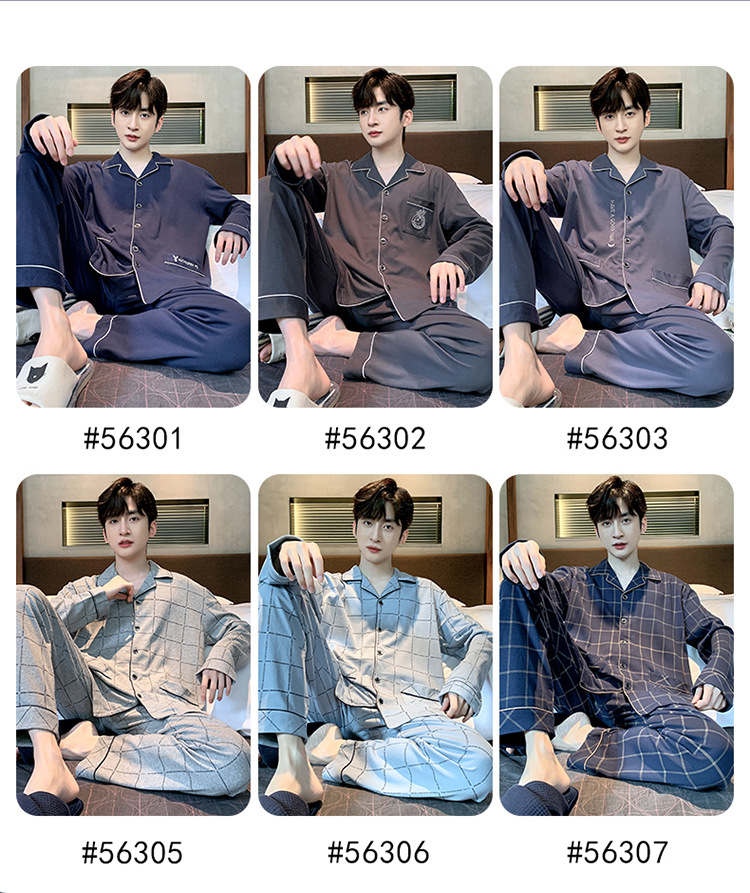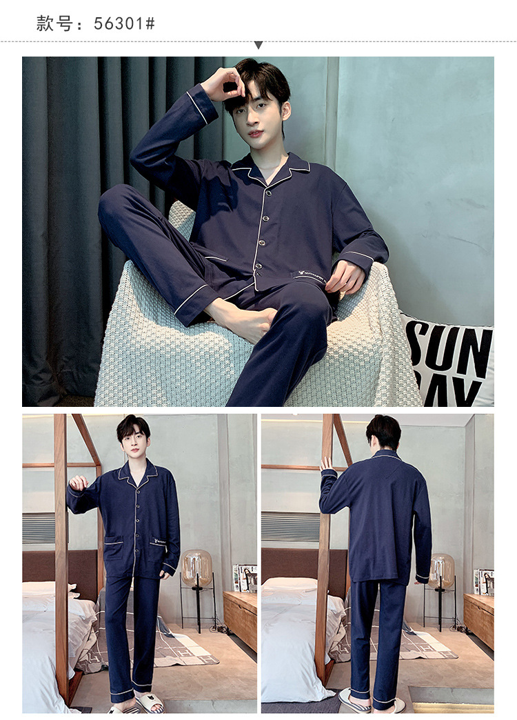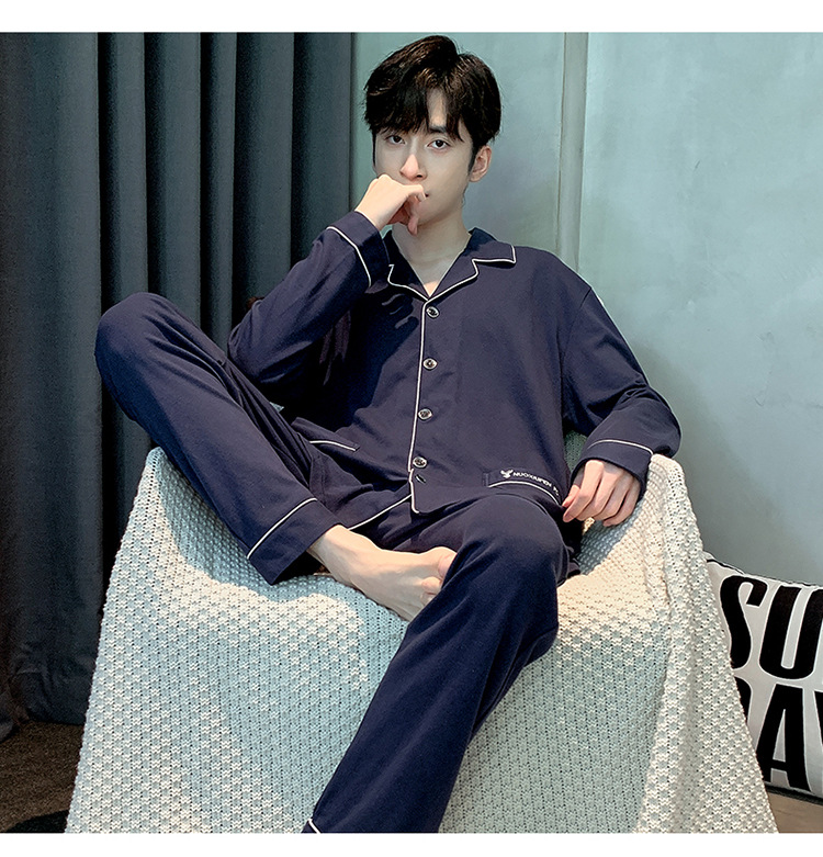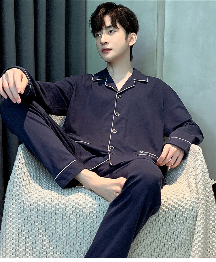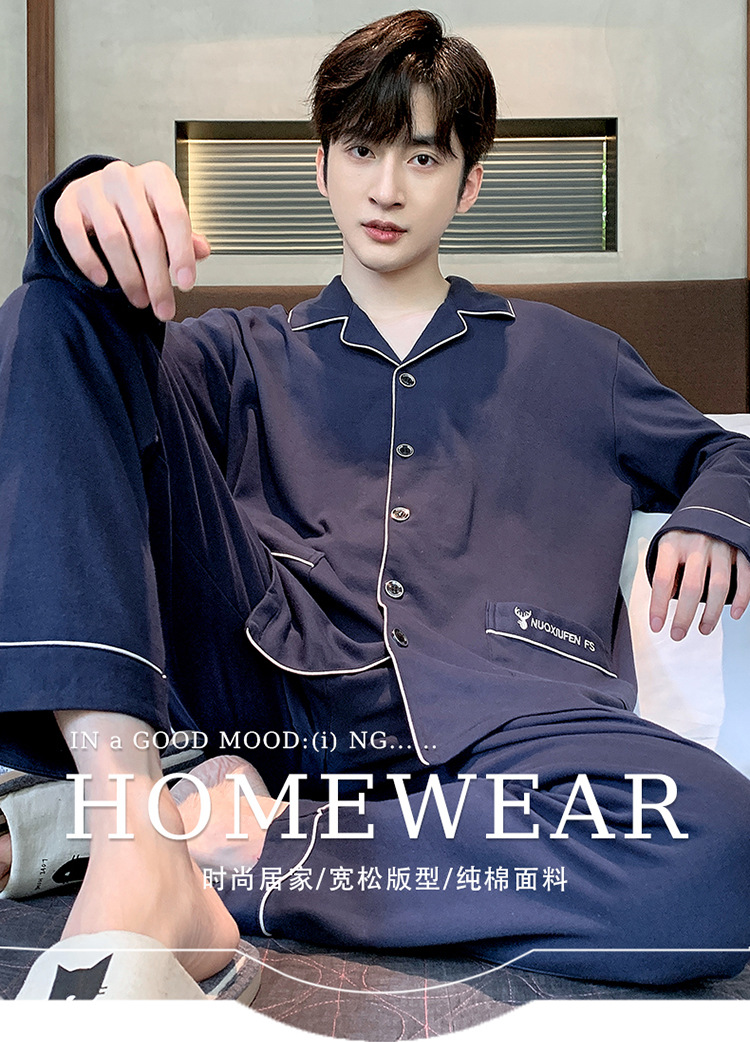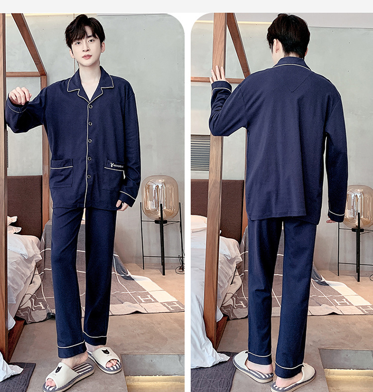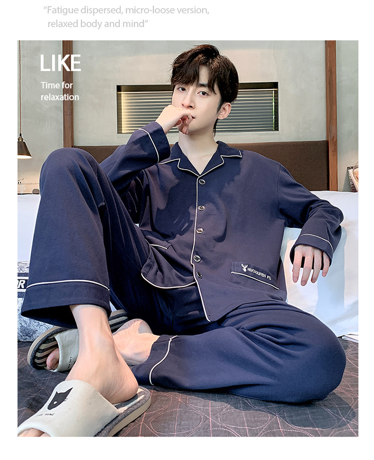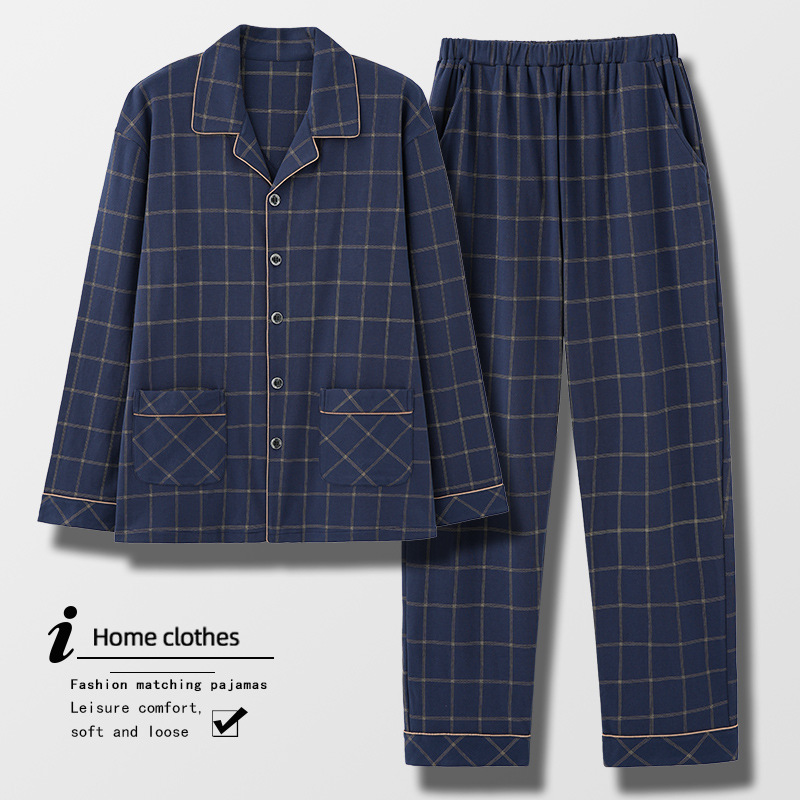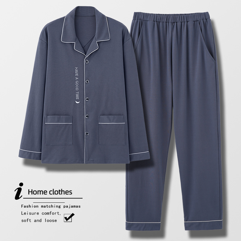 면 남성 봄과 가을 잠옷 느슨한 플러스 사이즈 캐주얼 카디건 간단한 고급 홈 착용 가을과 겨울 세트스토어 가기