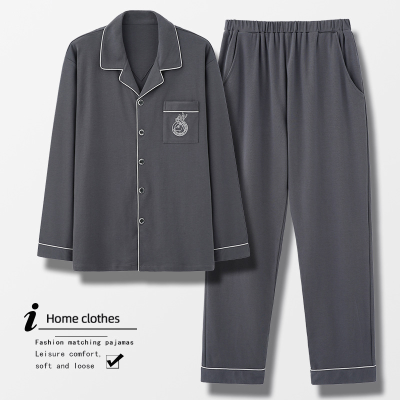 면 남성 봄과 가을 잠옷 느슨한 플러스 사이즈 캐주얼 카디건 간단한 고급 홈 착용 가을과 겨울 세트