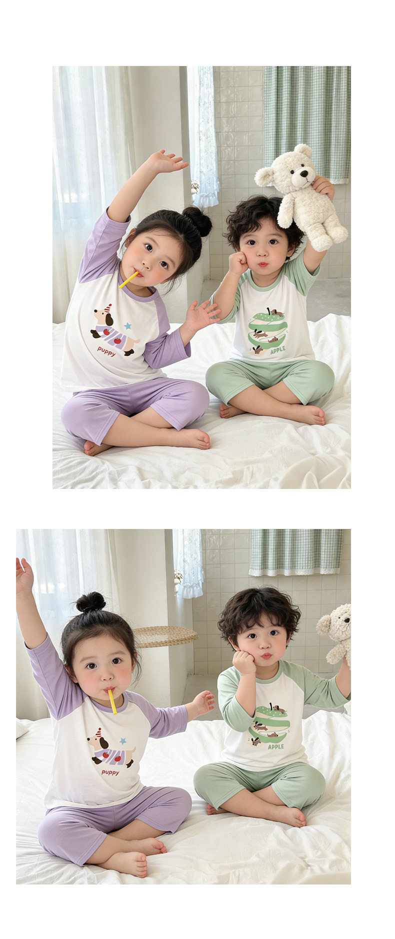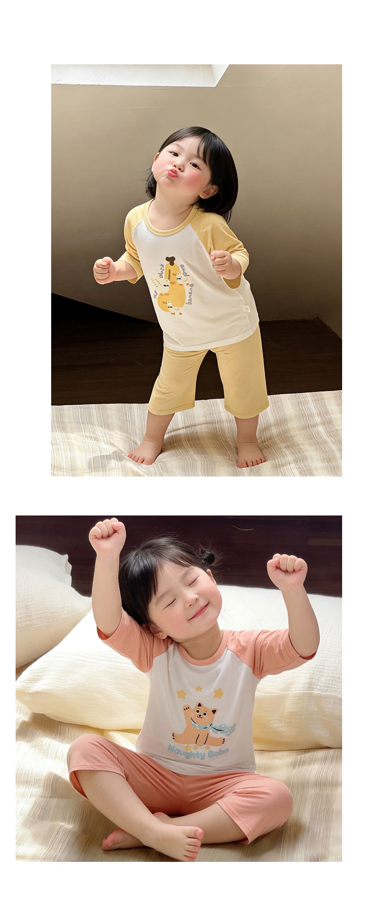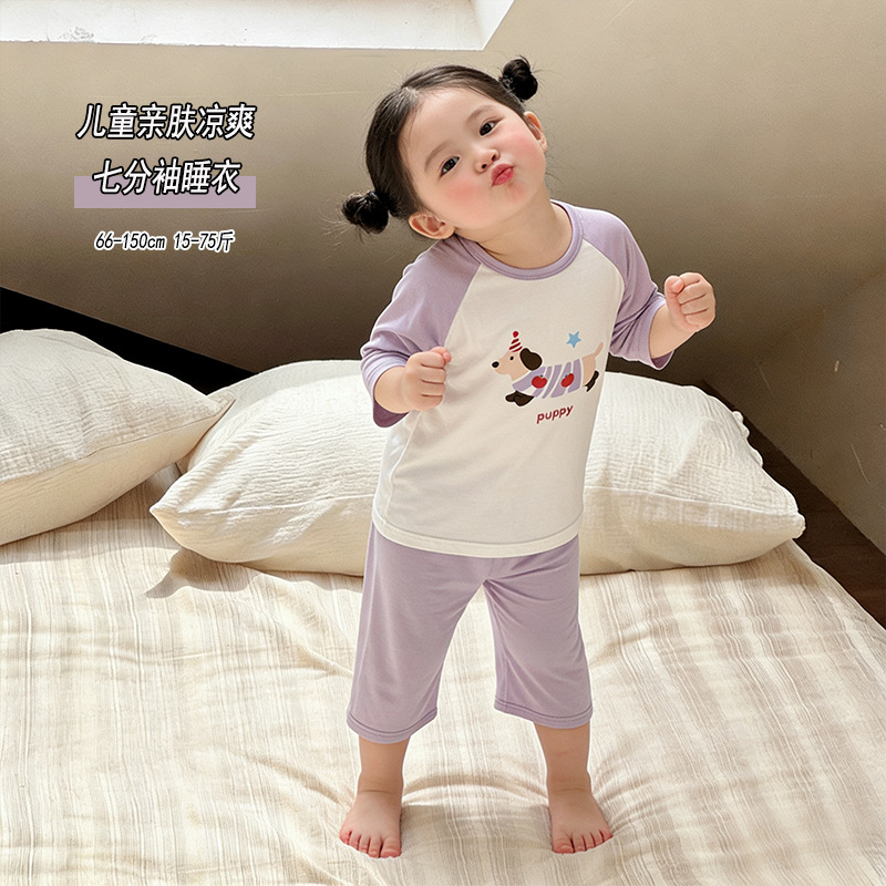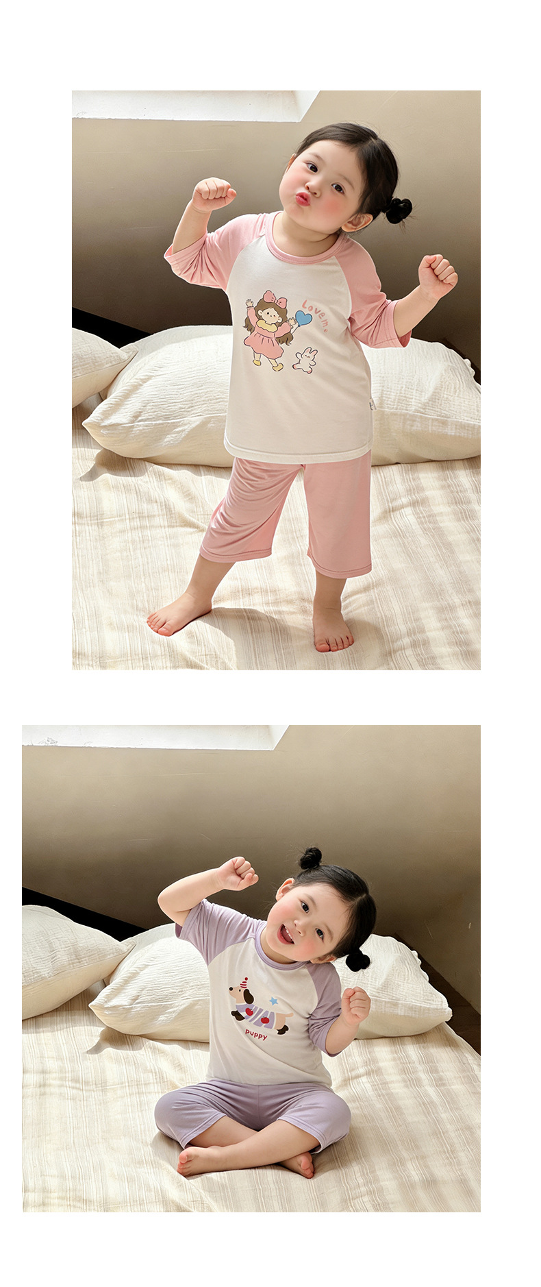 10-40kg 여름에 입는 여자아이들을 위한 구름같은 촉감의 면 소재의 시원하고 땀이 잘 안묻는 잠옷, 반팔 반바지 홈웨어