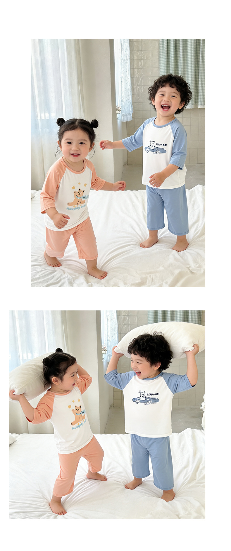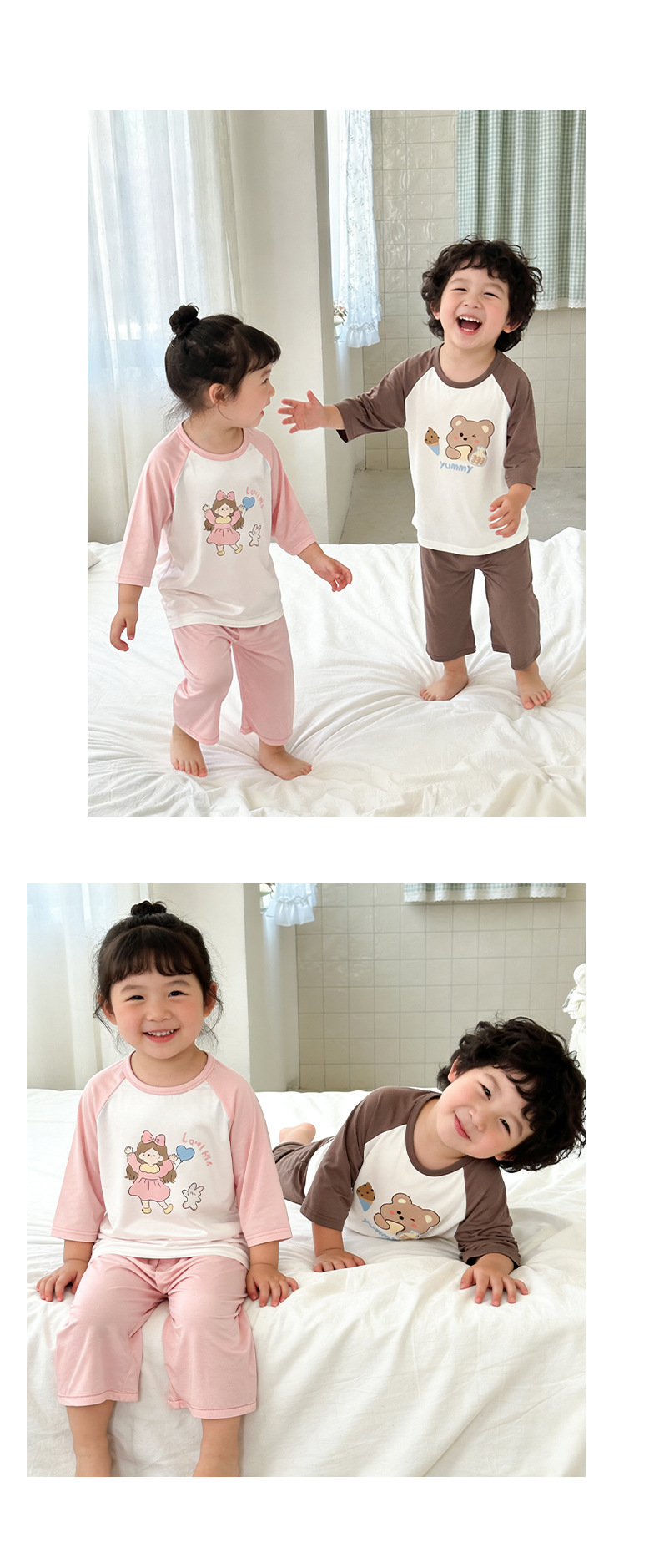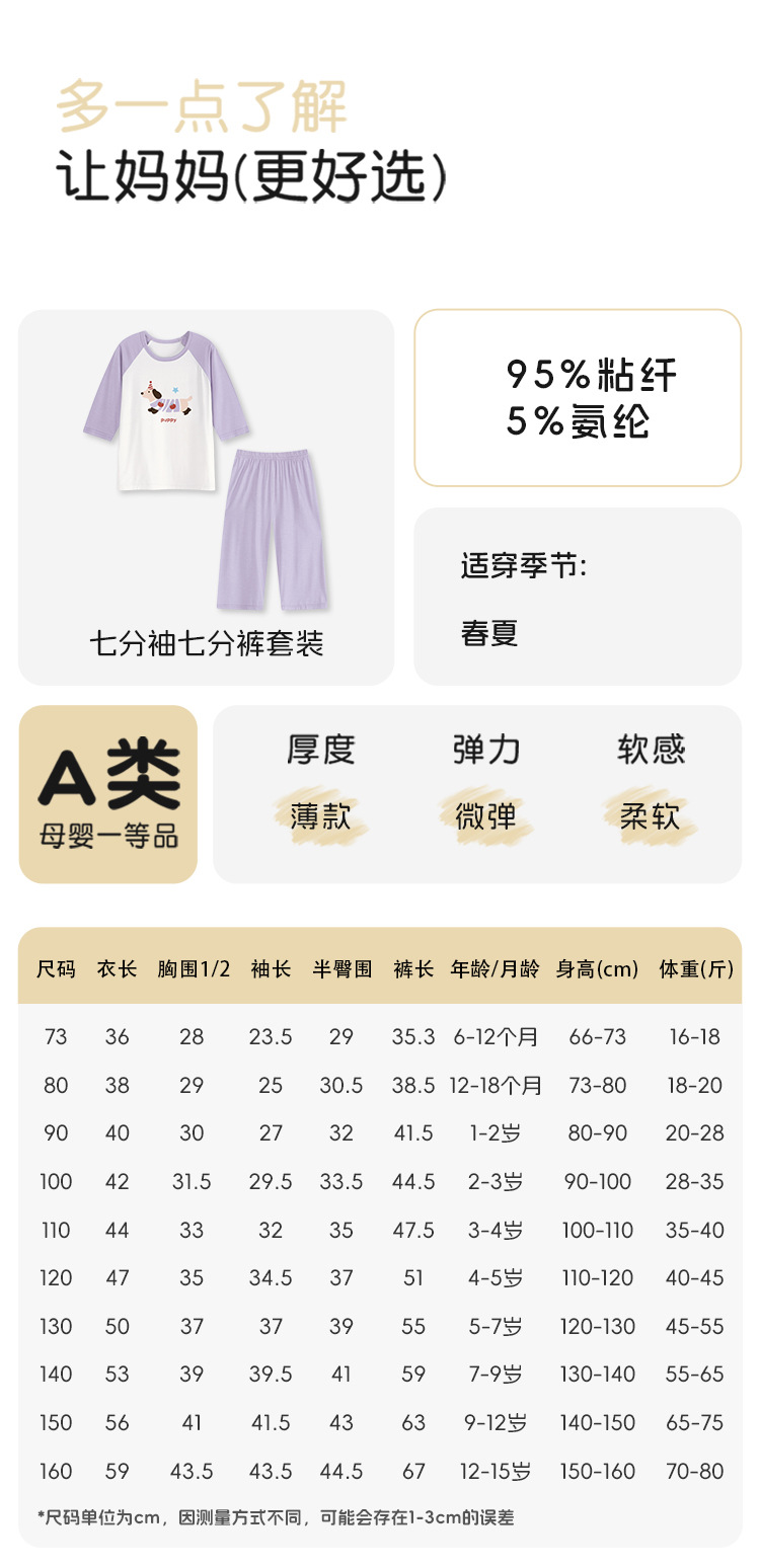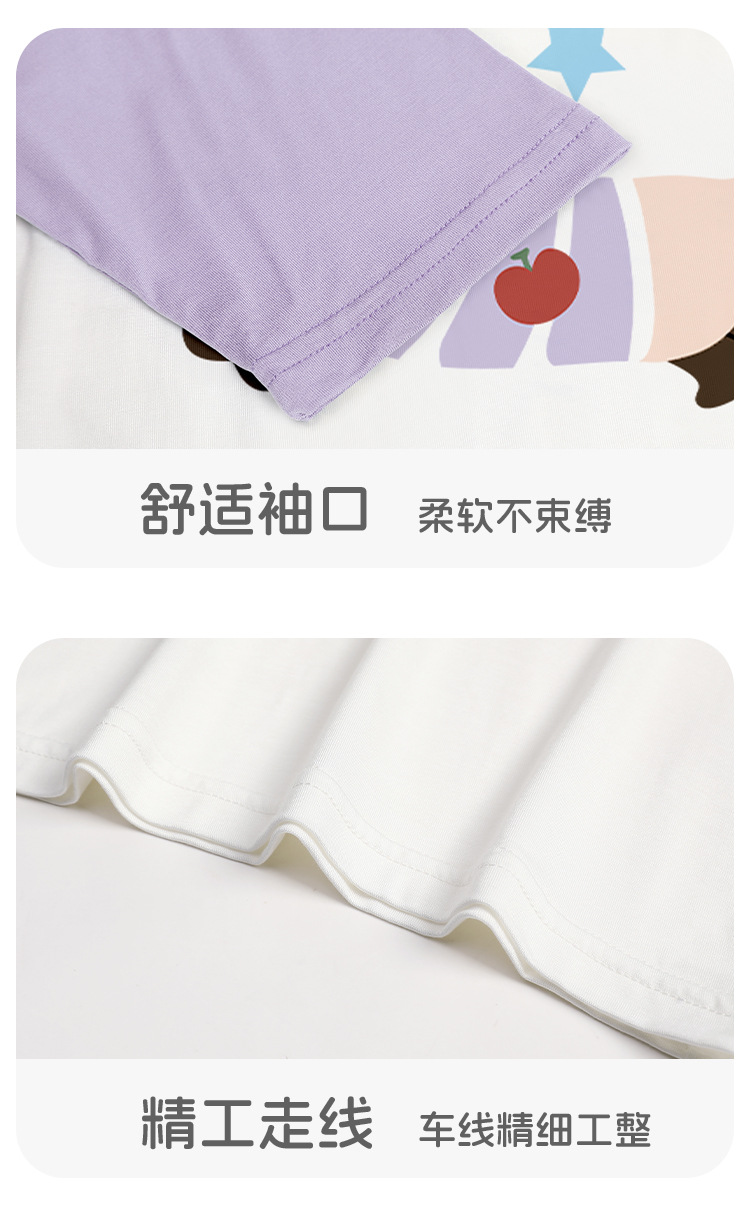 10-40kg 여름에 입는 여자아이들을 위한 구름같은 촉감의 면 소재의 시원하고 땀이 잘 안묻는 잠옷, 반팔 반바지 홈웨어스토어 가기
